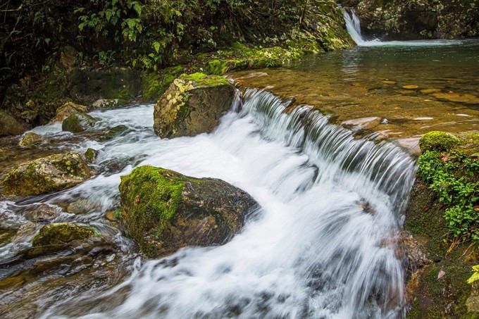 有水的地方,万物生长格外欣欣然。青苔长满山石,绿色的植被柔若海绵,把飞瀑跌落的气势连同喧嚣的水声吸收了许多,使眼前的景象既放肆又收敛,既阳刚又阴柔。