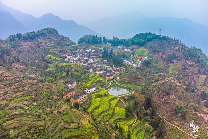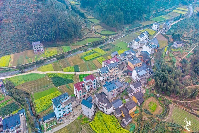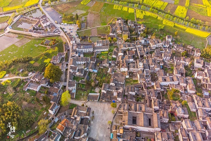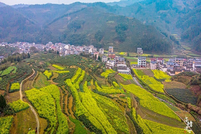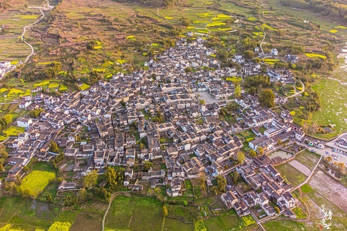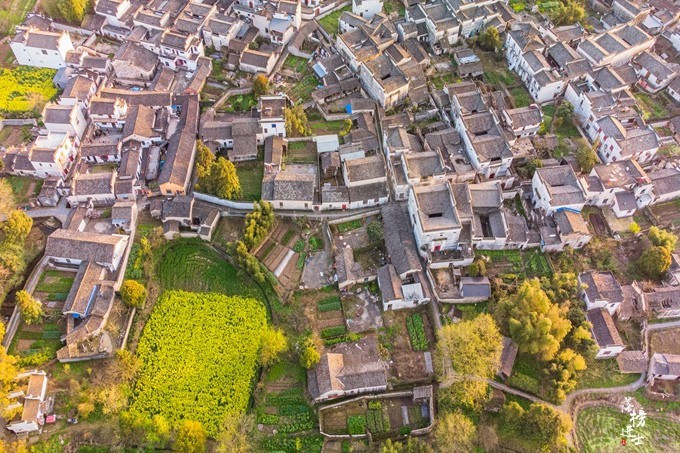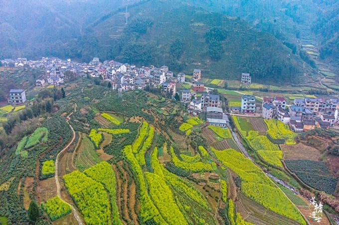 严池村是 黄山休宁 县最高的古村落,具有两千多年的历史,村庄不大,开着无人机从上空掠过,仿佛一转眼就看遍了村里的角角落落。此时油菜花还未全部盛开,再等上十天半个月,村庄还是那个村庄,周围的环境必然天翻地覆换了模样,让一座村子都淹没在绿树和花海中。