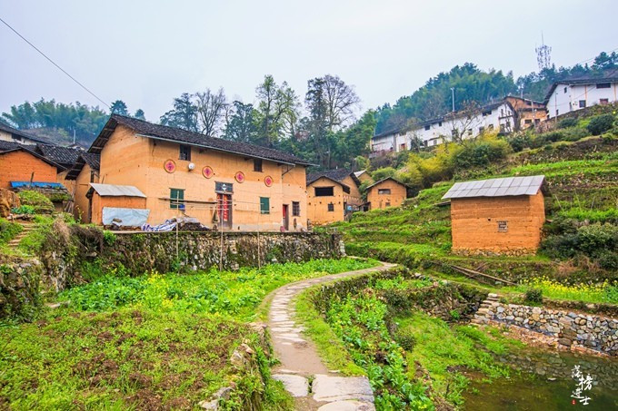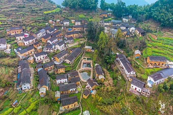 村中的民居大多粉墙黛瓦,集中在山中一处,被山岭团团围住,仿佛一座不为人知的世外 桃源 ,在淡淡的薄雾中尤其虚无缥缈。