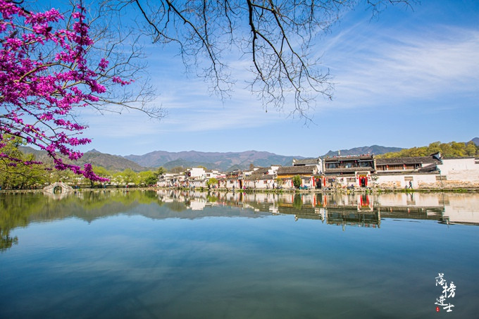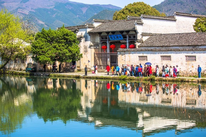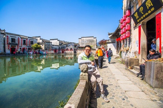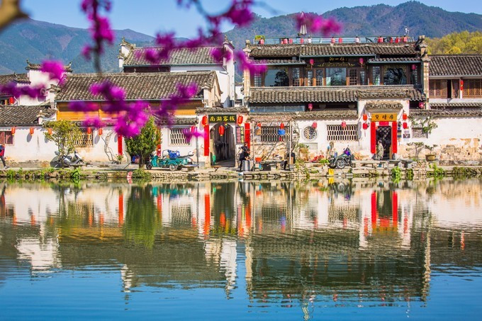 在这个半月形的水池之中,有着宏村经典的白墙黑瓦,时间在这里也仿佛停滞了下来。