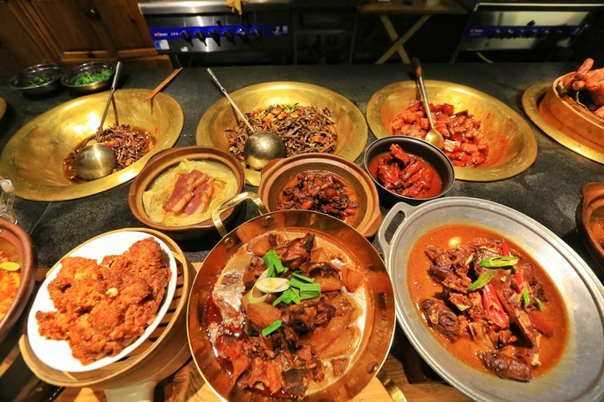 木头给人古朴的感觉,整个餐厅以原木色为基调,连着窗外的盎然绿意,一种“采菊东篱下,悠然见南山”之感由然而生,奔波了一天的人们回到这里,享受一顿地地道道的当地特色美食,旅行疲累的身心瞬间便满血复活。