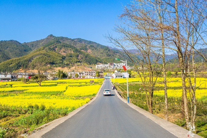 草长莺飞的四月,新叶和花朵长成了春天的诗,属于油菜花的那首是最热烈奔放的。位于 安徽 省 黄山市白际乡的严池村在这样的季节里,就摇身变成了一座诗意而浪漫的世外村庄。