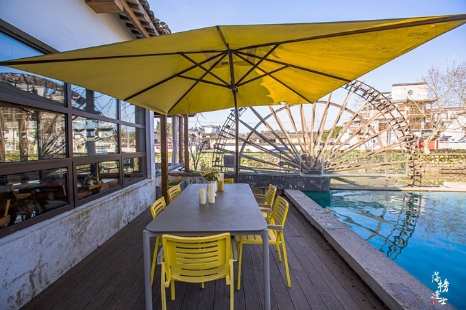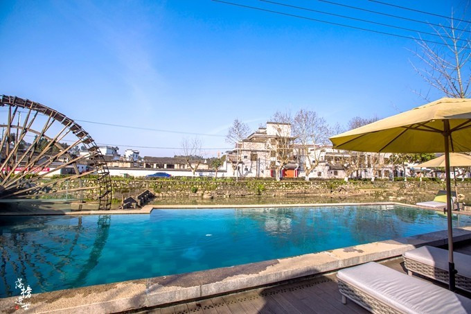 民宿周边环境古朴舒适,和喧嚣的 黟县 古城仅一河之隔,更远处有青山连绵,近处是白墙青瓦,还有水车以及江边泳池,心情自然是”久在樊笼里、复得返自然“般的放飞。