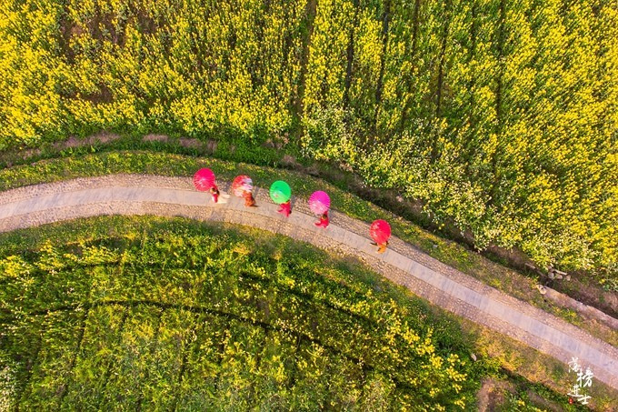 村外灿烂的油菜花充满春天的生机,更显得乡村恬淡幽静,越走近,越觉得是一幅天然的水彩画真实展现在人们面前。