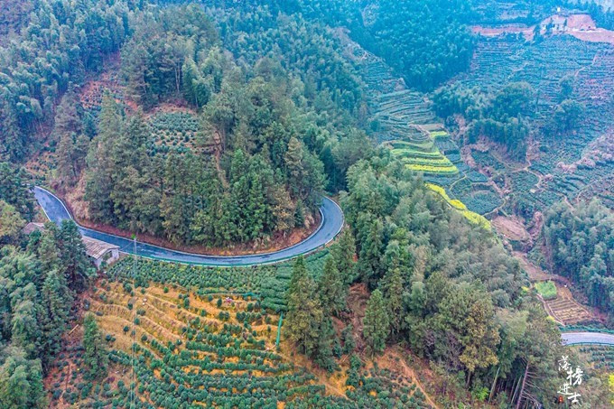 高空俯瞰是最佳欣赏角度,此时的山中有新生的绿色、成熟的墨色、沧桑的褐色,仿佛一幅关于春天的画作尚未完成,需要更多时日的春风吹拂和暖阳照射。