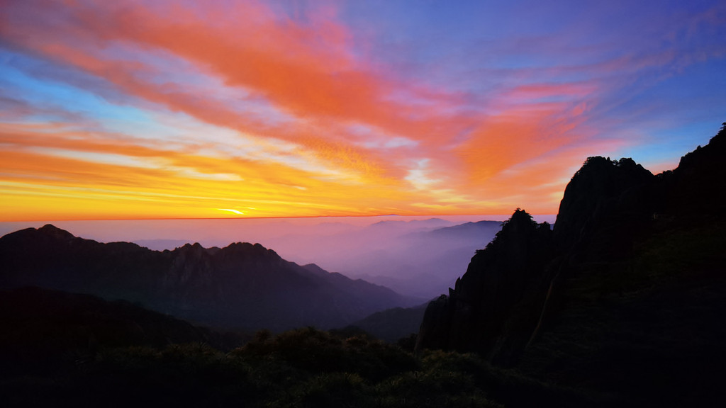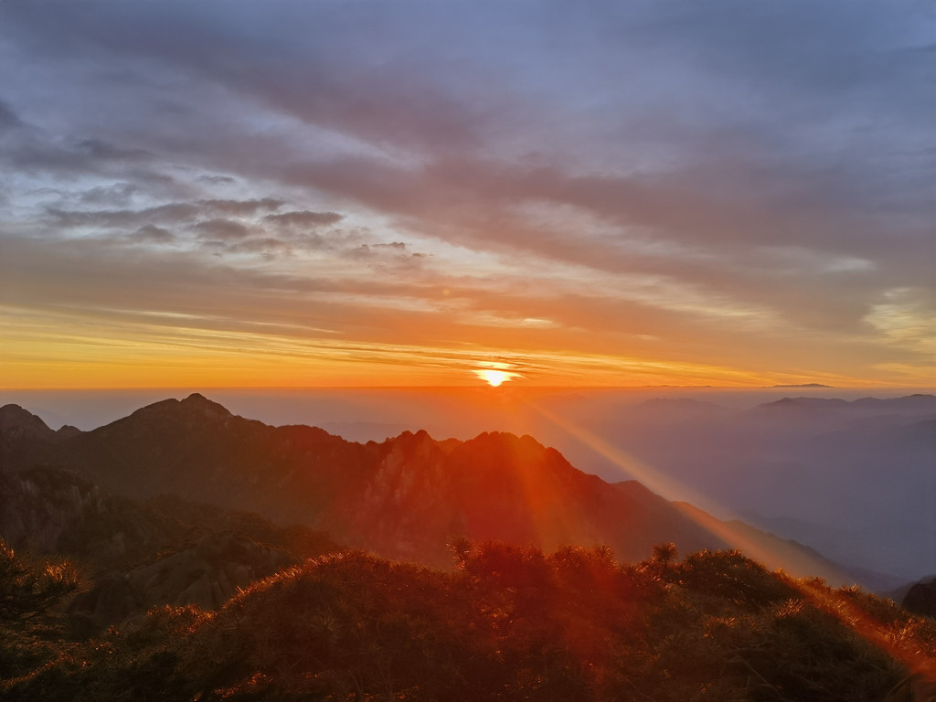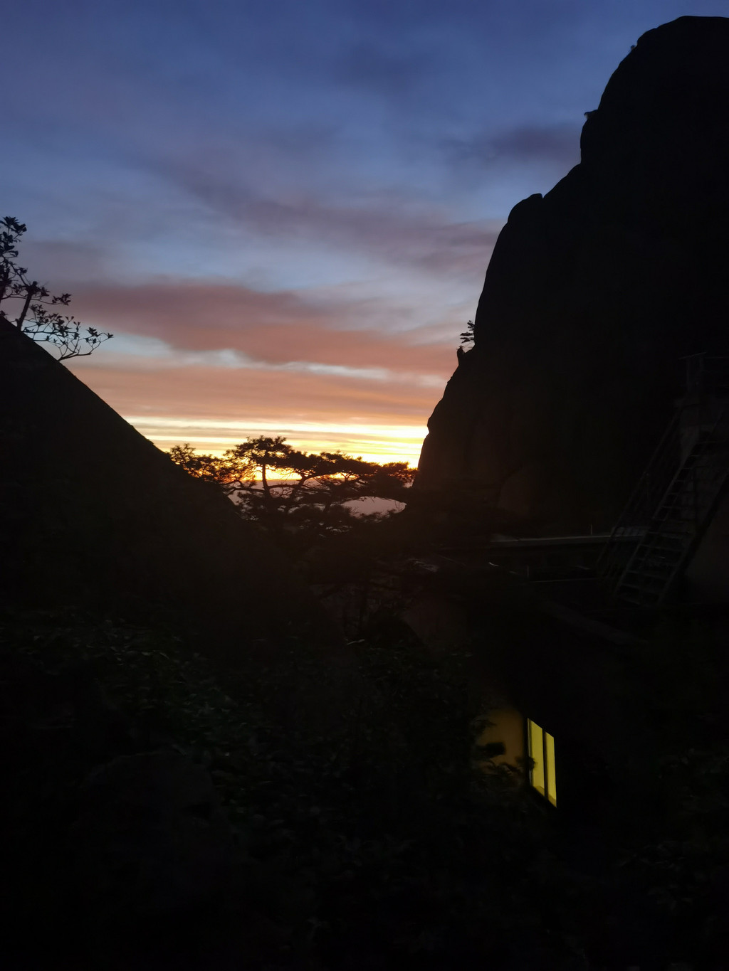 姥姥已经累个半死,不打算看第二天的日出了,没信心了,不知道要多远。早上四点多,妈妈却起来要去看日出,姥姥也就跟着起来了,没有打扰太姥姥和我,因为担心看不到日出再把老人孩子累到,姥姥和妈妈穿上宾馆准备的羽绒服出发了。这次人家还真没说错,真的很近,并且真的看到了日出!好美好壮观啊!这是姥姥觉得去黄山最值的,瞬间变化无穷,如入仙境一般。