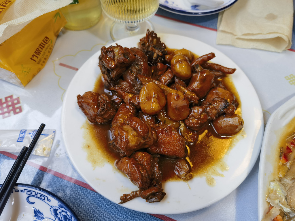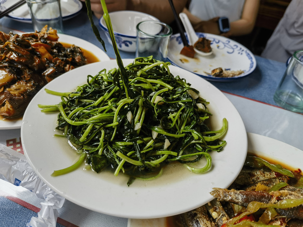 美食。民宿租户不能做饭,可以在他家订餐。天台有秋千,但到处都是蜘蛛网,即使你打掉,勤劳的蜘蛛一会儿就又织了起来。害怕蜘蛛的可以不订天台房,房租还能便宜些。老板娘很漂亮,儿子也帅气。老板和老板娘都会烧饭做菜,手艺不错,味道也超级棒,家的感觉。吃到了地方特色臭桂鱼、炒竹笋、栗子炒鸡、炒莴苣,都非常有味道,除了有点咸以外,没别的毛病。刚挖出来的新鲜笋真是太好吃了!第二天临走又在他家吃了一顿,真的是超赞。两顿正餐一共花了500元。姥爷特意提到了老板娘给上的野茶非常好喝。