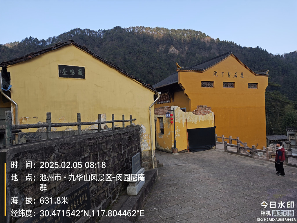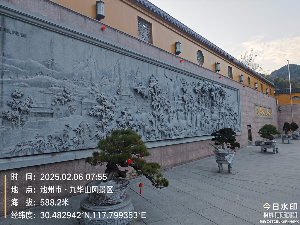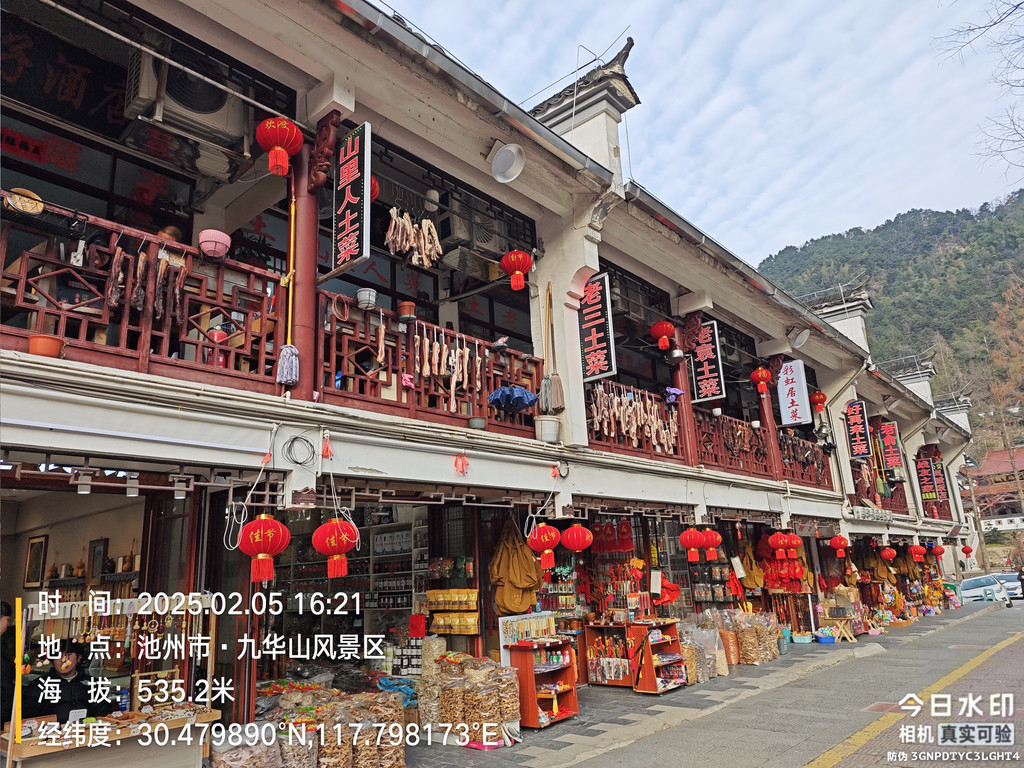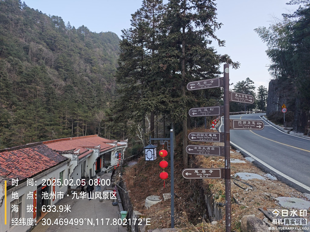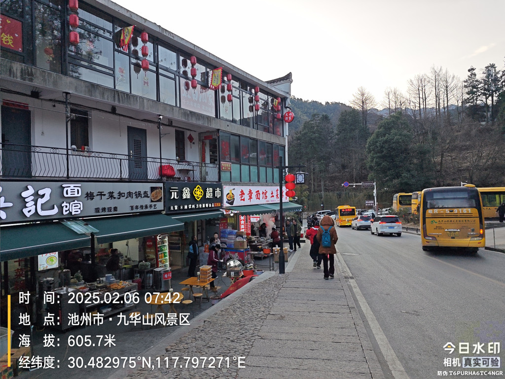 从徽州古城走高速去九华山景区,春节假期进入尾声,这段路车不多,晚上19点半到达九华山景区游客中心停车场。春节期间自驾车不能开上山,我们把车停在游客中心停车场,坐景区大巴到山上,联系了民宿老板开车在山上景区大巴停车场接我们。