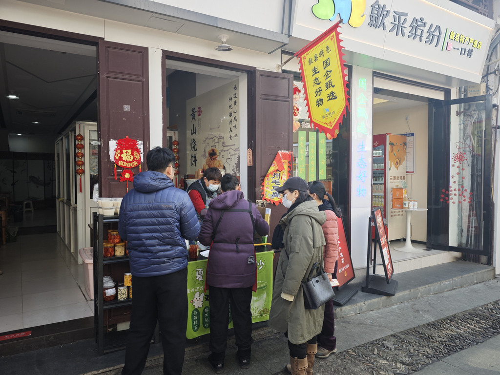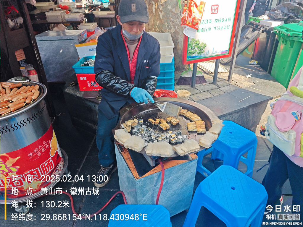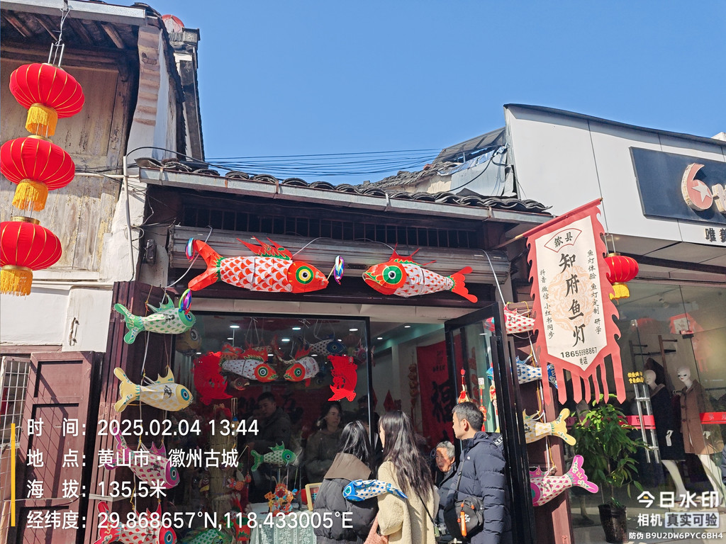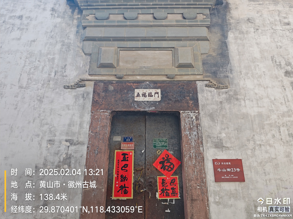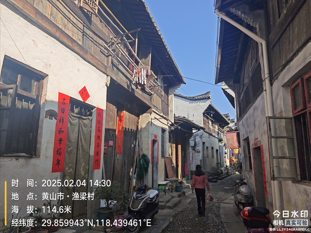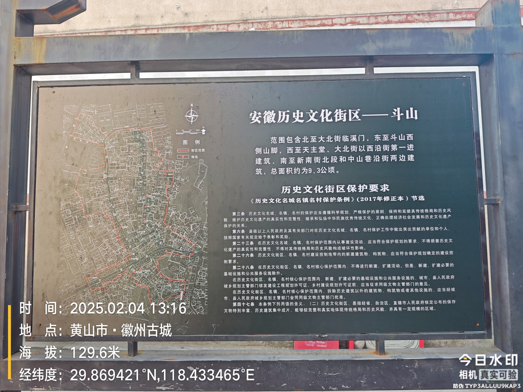 从汤口镇上高速去往徽州古城,春节期间路上车较多,缓行路段较长,还遇到一起事故,耽误一点时间。中午到达徽州古城时,停车场已经停满车,路边停车位都停满车,古城周围停车不方便,开出很远才停好车。