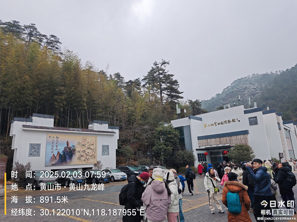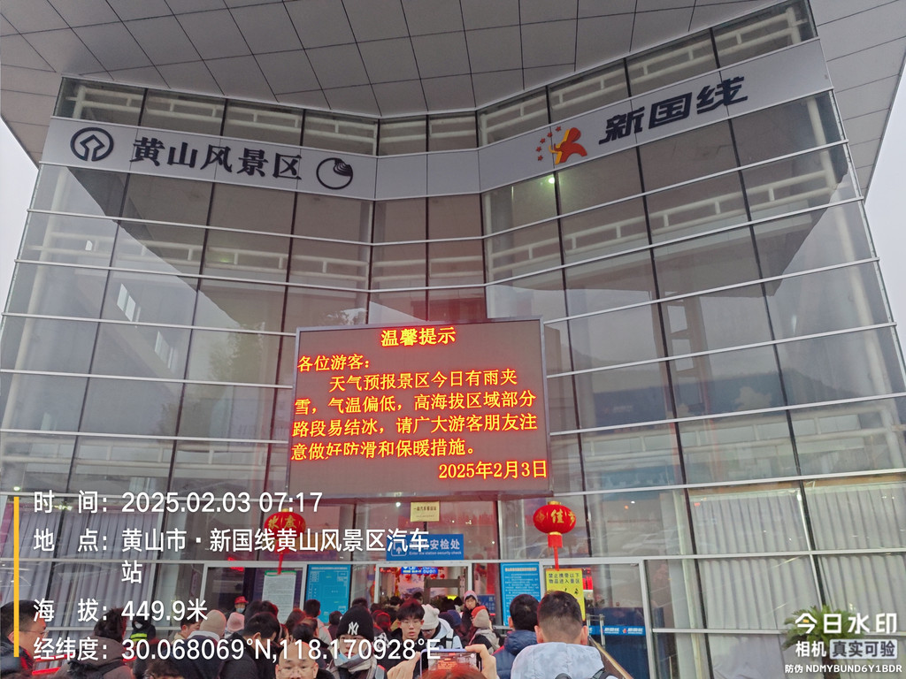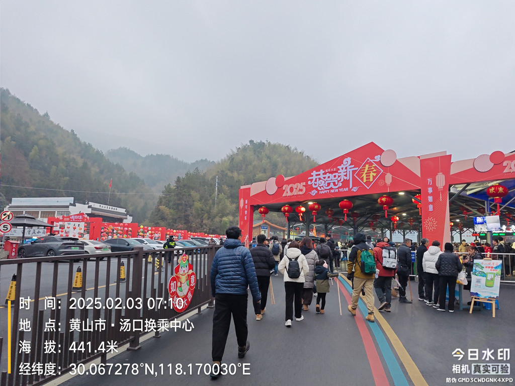 汤口镇的黄山景区南门换乘中心入口,从这里坐景区大巴去索道站。我们住在附近,步行几分钟就到了。