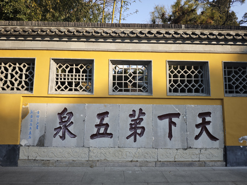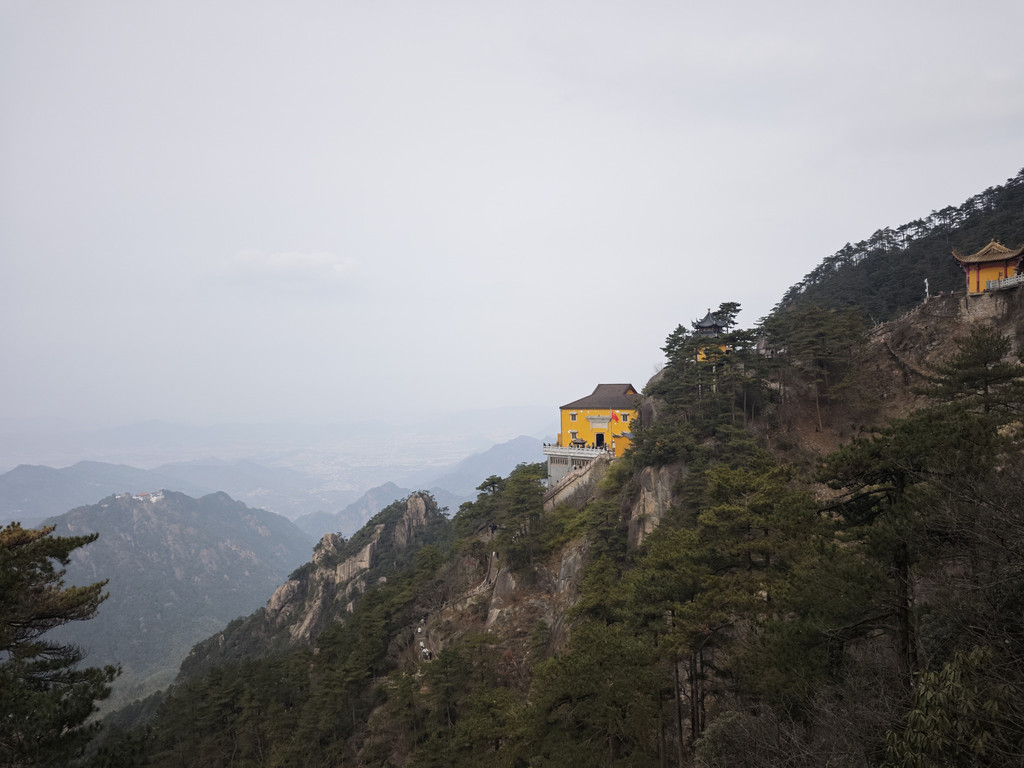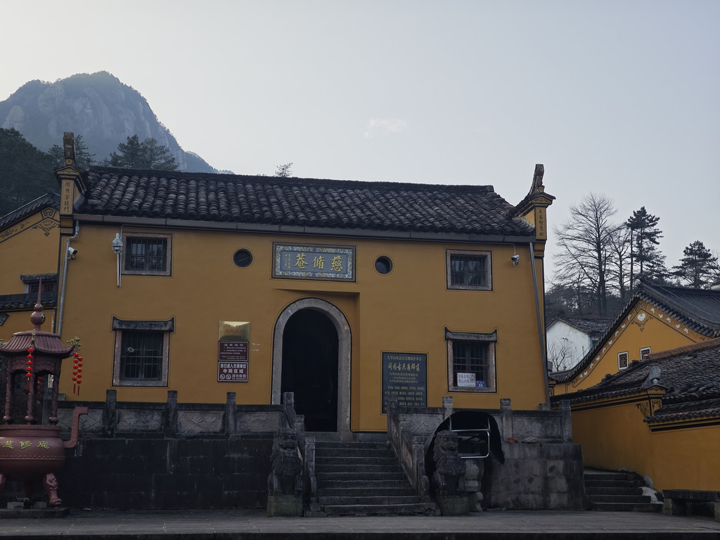 早晨,我们排队坐开往天台景区方向的景区大巴,在最后一站凤凰松站下车,步行登山去往最高的天台寺,海拔1306米。如果想坐索道上山,要在前一站“天台索道”站下车。从凤凰松站出来,沿着左边的道路步行上山,先经过闵园景区,再到天台景区。徒步登山的人很少,非常考验体力。