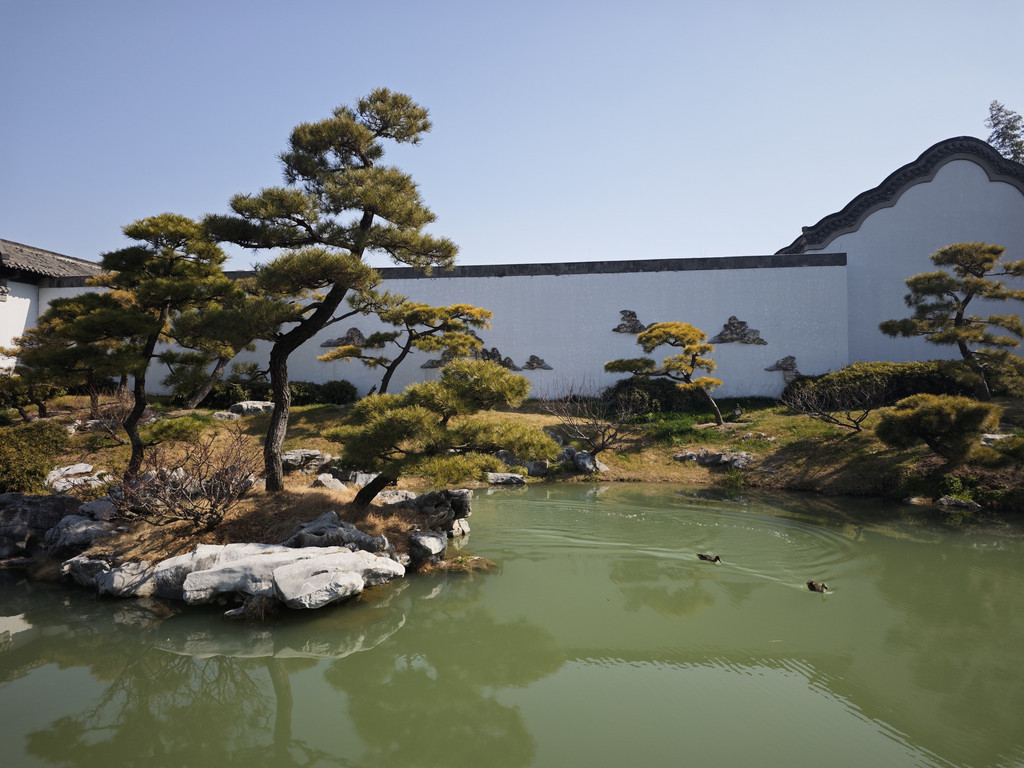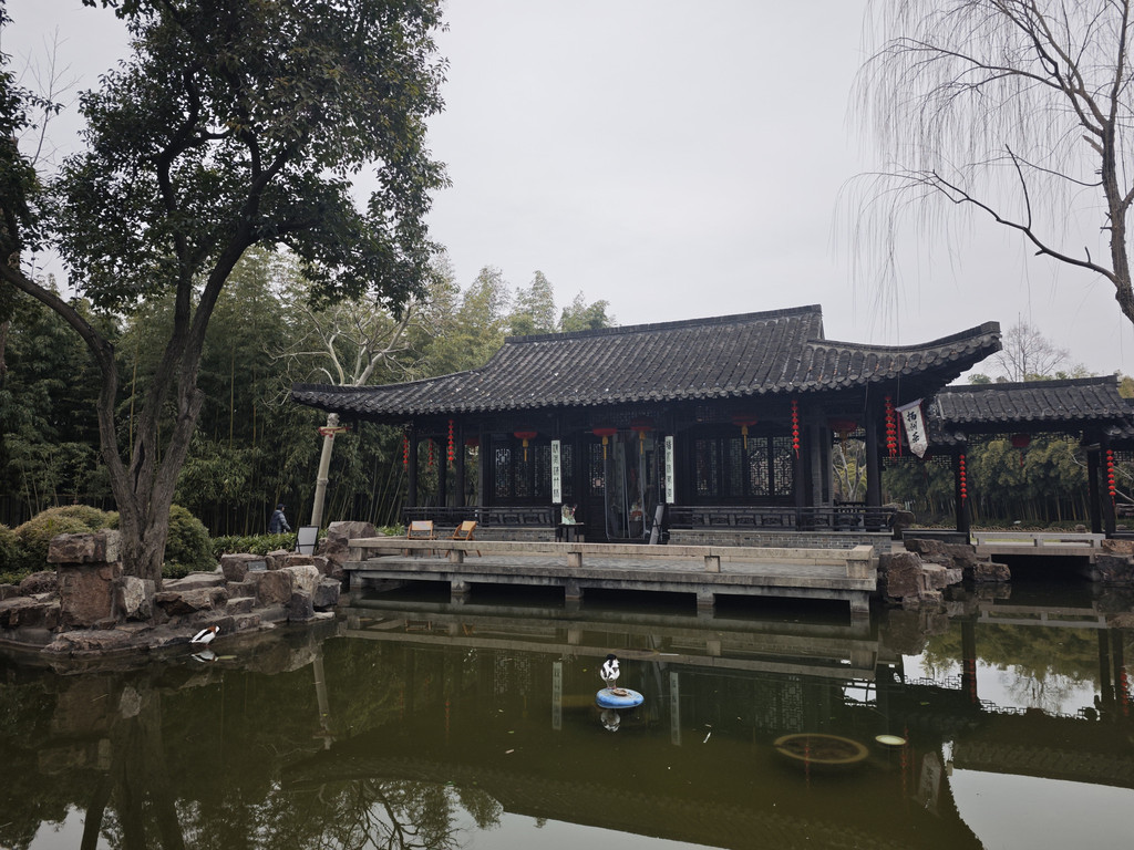 园中遍植翠竹,取东坡诗句:“宁可食无肉,不可居无竹;无肉使人瘦,无竹使人俗。”以示主人不俗。又因竹叶形状像一个“个”字,故名“个”园。