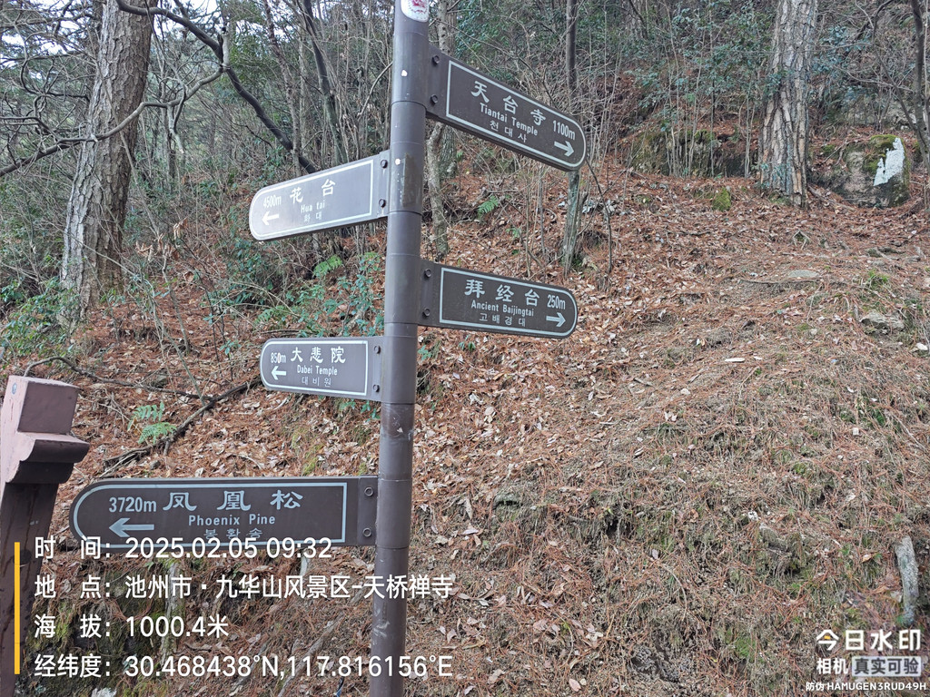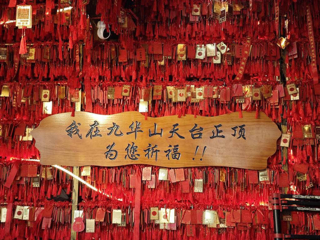 九华山景区山上大巴换乘站停车场前面的石碑。昨天晚上民宿老板开车在这附近的路边接我们。山上的景点有:九华街、天台景区、闵园景区、百岁宫景区、花台景区。去花台景区要单独购买车票。