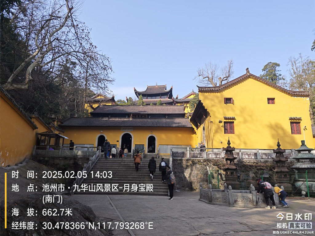 从小天台徒步到月身宝殿。也可以排队坐景区大巴到月身宝殿。