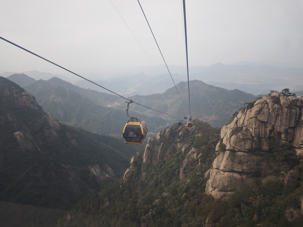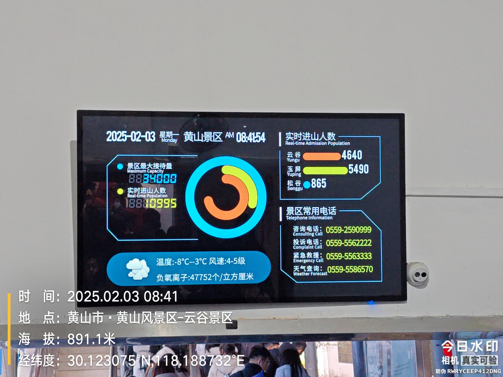 在黄山景区南门换乘中心检票处刷身份证进入,排队坐大巴车去索道站。坐云谷寺索道和玉屏索道方向不同,分别排队。