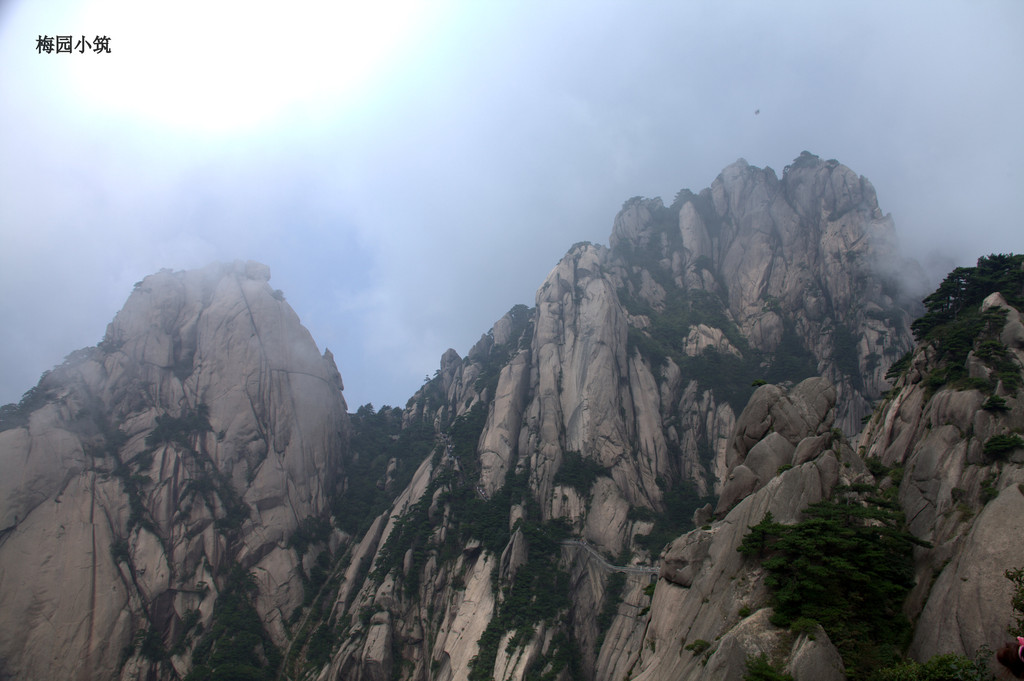 从缆车上下来,眼前就豁然开朗了。原来从山脚下看到的是郁郁葱葱的丛林景色,可是,到了这里,才只是半山腰,已经是巧石争妍,奇松林立,三面临空,悬崖千丈,不由得对未来两天的行程充满了期待。
