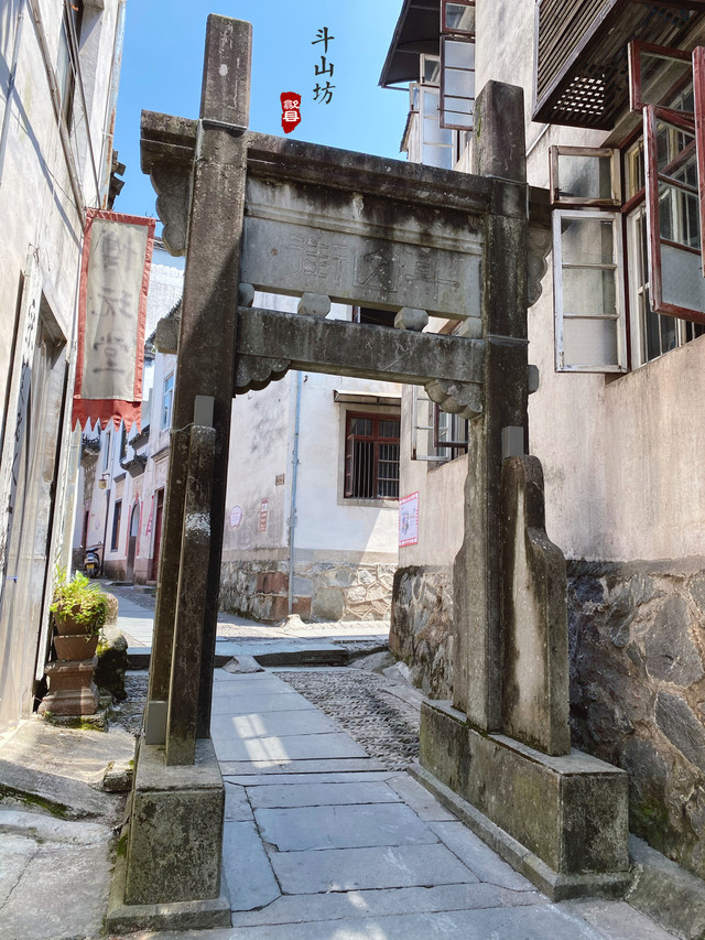 这不太像一个典型的“古城”,除了几条主要的商业街,大部分都是狭窄破旧的巷子。除了斗山街和几处零散的建筑保存较好,很多地方也明显不是当年的模样了。古老的牌坊、店里卖着的文房四宝、停在门口的电动车、随处可见的五花八门的标识,让人恍惚间有了时空错乱的感觉。