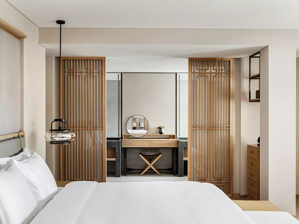 这家酒店曾经是黄山国宾馆,后来被祥源控股收了之后,请香港CCD重新进行了室内设计。重塑后的酒店轻奢雅致,颇有禅意,共做了62间客房,一部分套房带私汤。公区还配置了6个温泉泡池,爬完山回来泡个汤,还是挺解乏的。