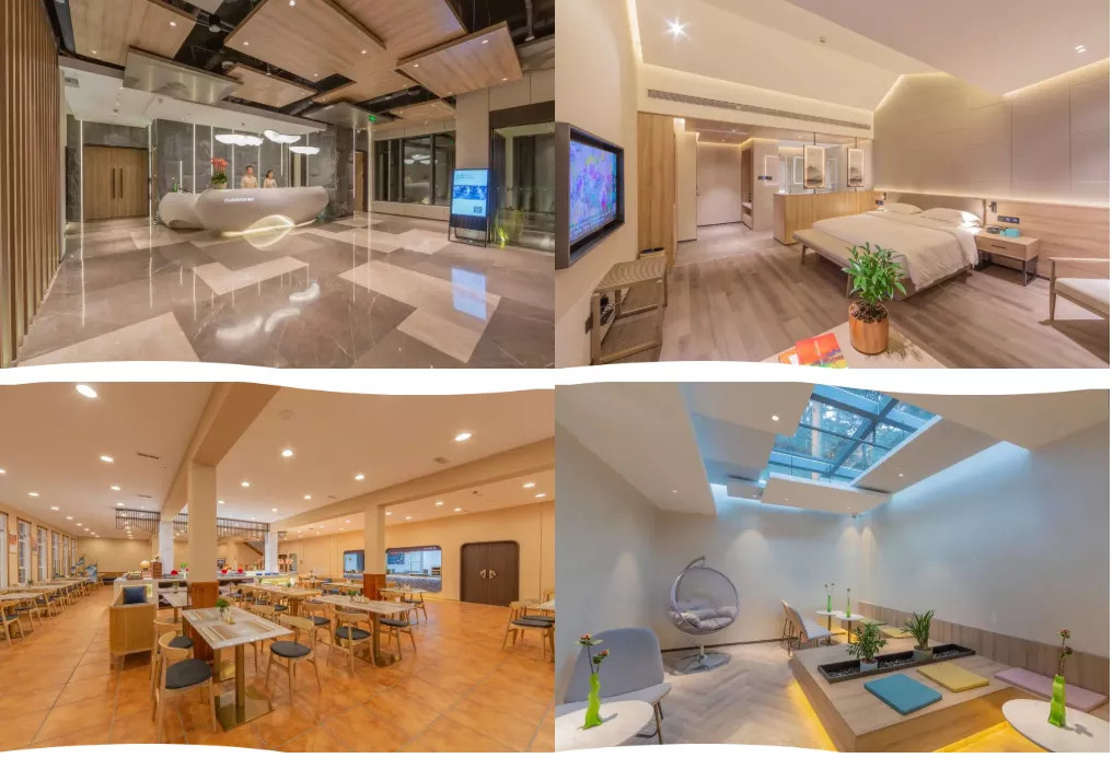 排云型旅(重点推荐):2021年装修,设施最新。北门太平索道上山后步行15分钟抵达,靠近西海大峡谷起点,丹霞峰可以看日出日落。有星空房、露营帐篷、咖啡厅、游戏室等,很受年轻人喜欢。还有免费洗衣房和Costa咖啡。价格1188元起,性价比高。
