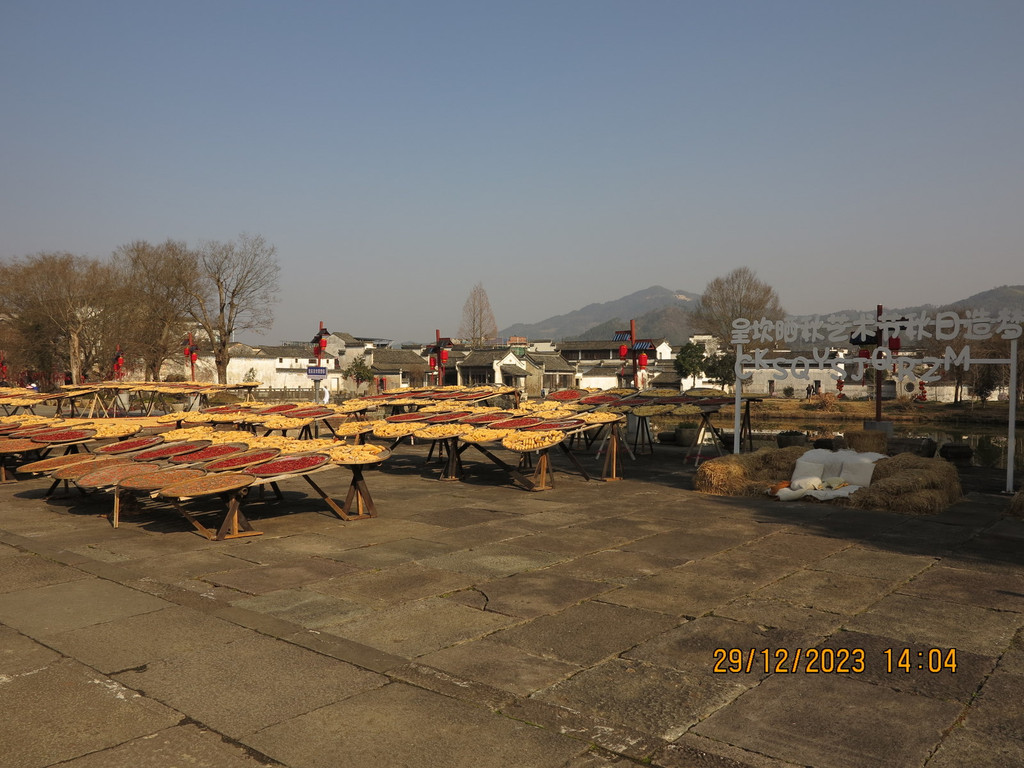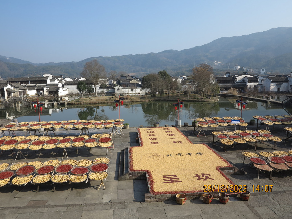 驱车黄山北站,路过看看呈坎古镇。这里是5A景区,107块,门票贵了点,其它不错。呈坎始建于三国,按先天八卦图主四卦布局形成,号称风水第一村,风水咱也看不懂,但村子挺漂亮,走走看看,晒秋广场周边是景色的精华,古村落内也值得看看。