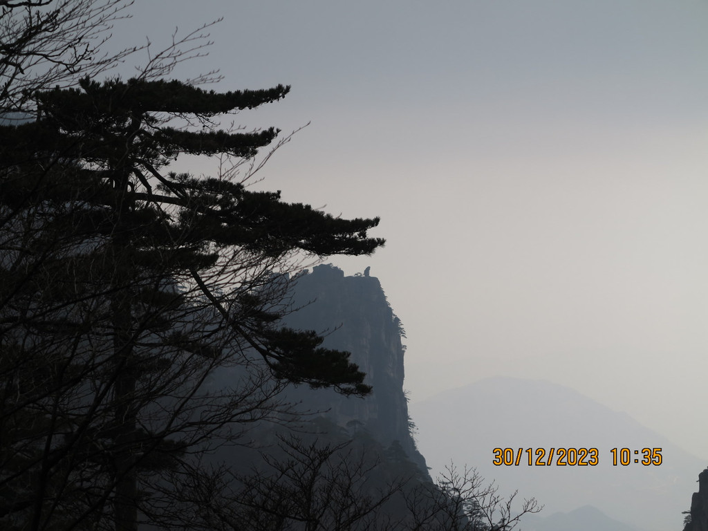 十几分钟直达白鹅岭索道上站,没有下雪,天气有点阴,路面没有冰,有些角落了还有前几天的积雪。周围景色真的是漂亮,黄山任何时候都不会让人失望,黄山之旅由此开始。黄山的山顶还是非常大的,无门选择在山顶住一晚,由于冬季,西海关闭了,莲花峰轮休要关闭五年,天都峰要明年四月开放,我们选择环山休闲游。一路绕着各个山峰走,后山上来先去始信峰,爬上山顶不算累,人也不算太多,山顶风光真的漂亮,这里巧石争艳,奇松林立,三面临空,悬崖千丈,这里还是黄山最东面,冬季一早看日出的绝佳位置。