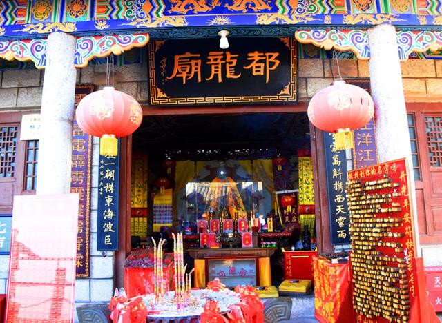经过苍龙岭下来不远就是都龙廟。都龙廟始建于北魏,南出庙东侧门即苍龙岭。庙依几块巨大片状石壁而建,构思奇巧,建筑风格别致,土形大小与岭的险峻相得益彰。庙后为苍龙岭西崖壁,苍松成林,岩花铺锦。庙前与救苦台之间地面平坦,间有伏石,四周环境优美多富变化,加之又是北峰到五云峰之间最大的坪场,所以这里也是一个不错的歇脚处。