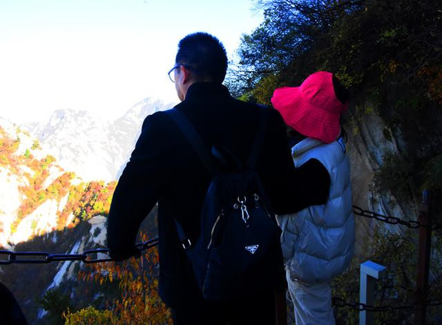 从西峰到北峰的途中一路下行,有的地方台阶陡耸,还真得小心翼翼。但是相对来说,我们是下山要远比那些从北峰一步步爬上来的人轻松不少,特别是还有不少年轻人半夜来爬华山就为观赏翌日的日出东方的壮美景象,为此,真是从心底里佩服这些不畏登山艰辛的游客。有句话说得好:人跟人比得死,货跟货比得扔。想来的确很有道理,像记者严格说来已步入准老年人的行列,如果真要从北峰爬上来想都不敢想……