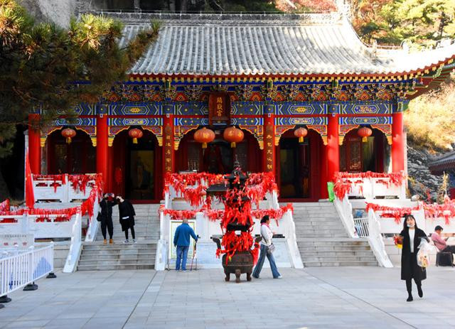 从西峰缆车站下来走不远就是镇岳宫,镇岳宫位于华山西峰东坡下边。这里林木繁茂,苍松插天,溪水环绕,松涛声和流水声交融在一起,甚是清雅。宫依西峰东麓而筑,随崖就势,构筑独特。宫前地势平坦,四周奇峰耸天,苍松挺翠,繁花布锦,瑶草结环,是一处环境幽美的宫观建筑。这也是记者登华山后看到的第一座古刹。