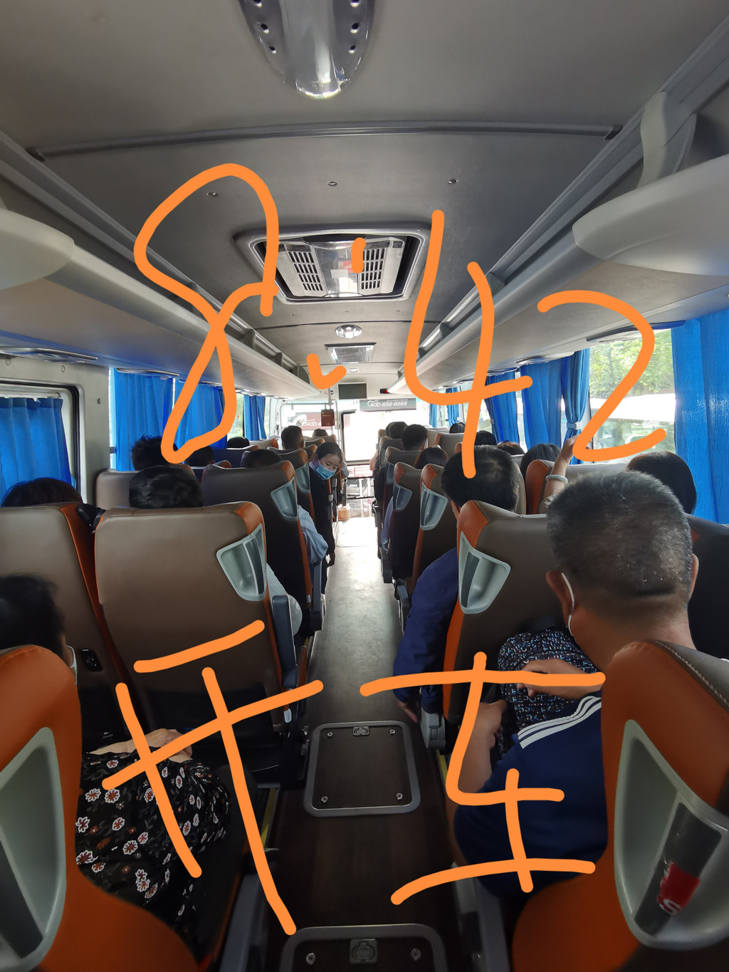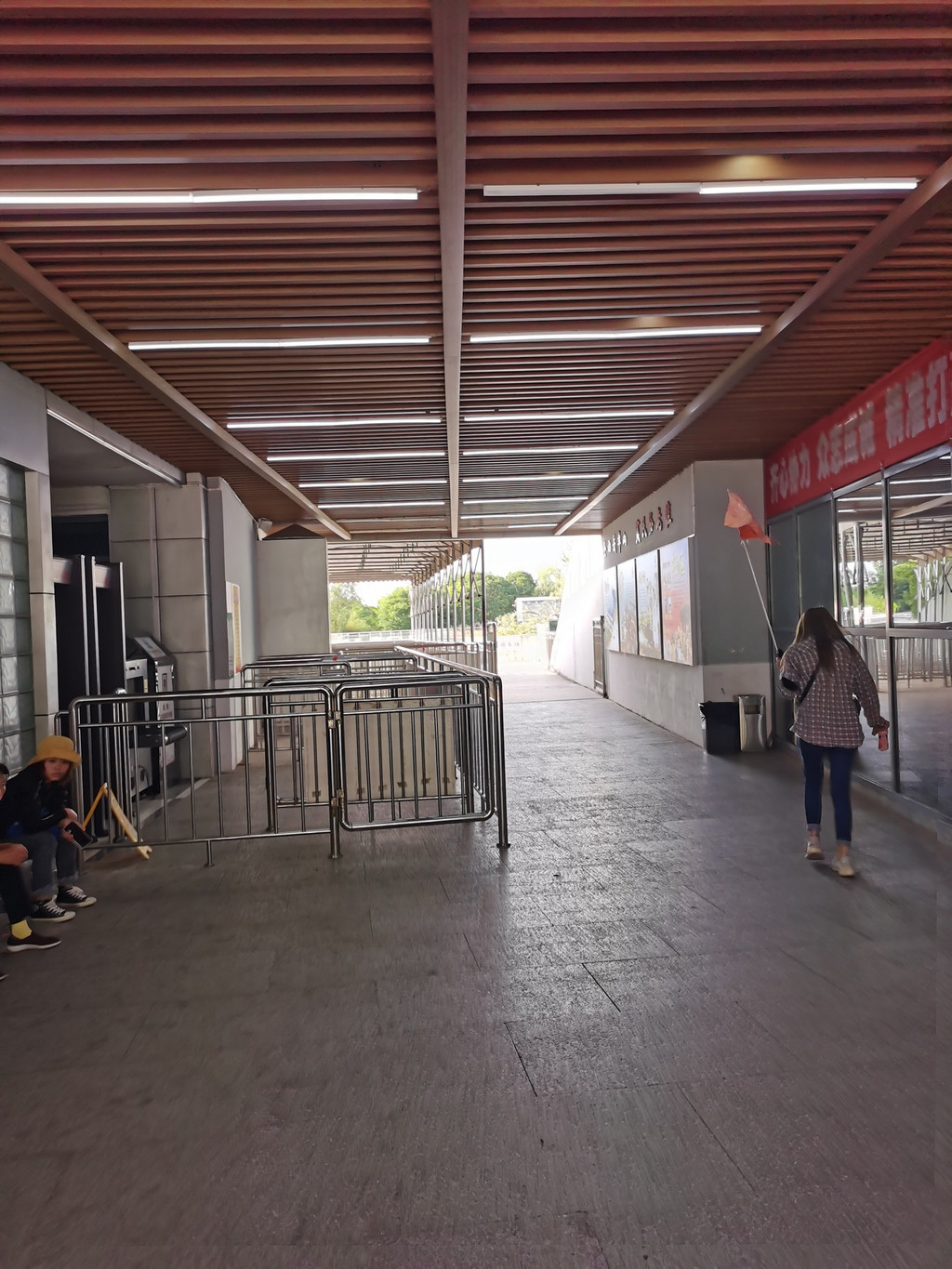 游客中心办理安检、排队候车,直到8:42去往西峰了的摆渡车开车了。