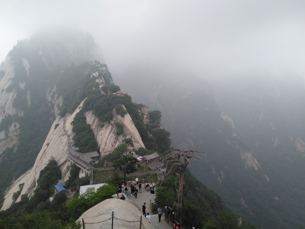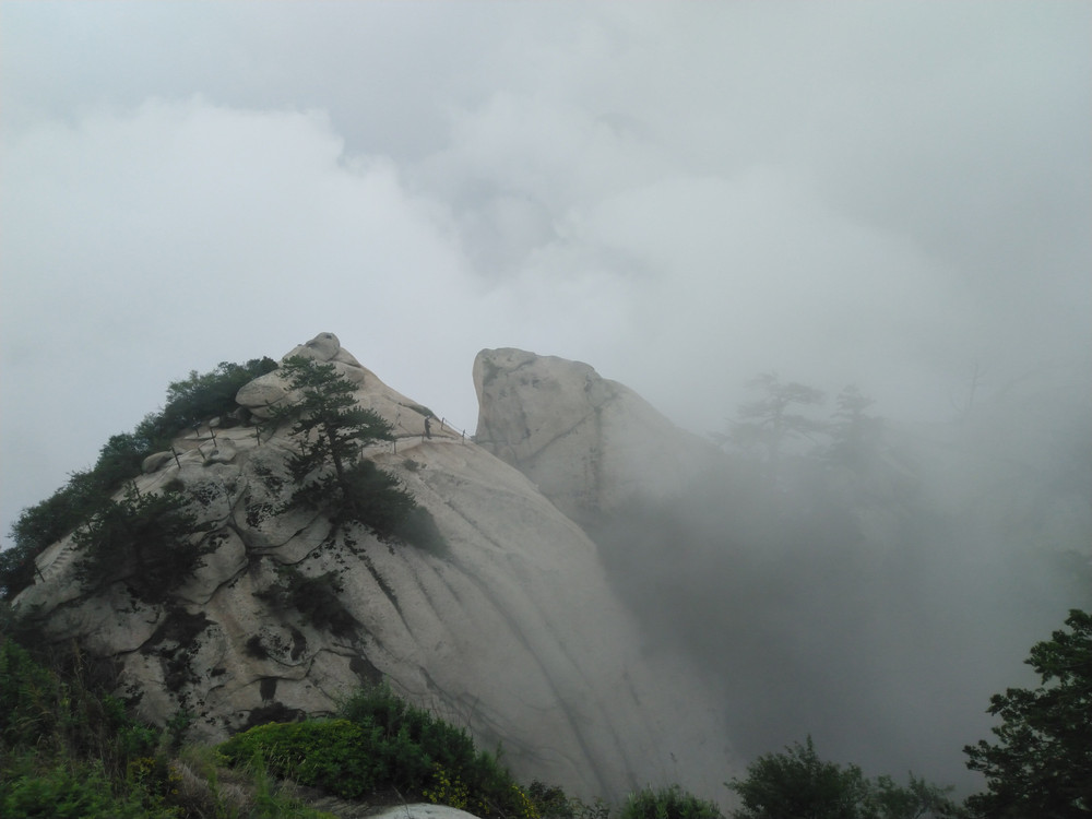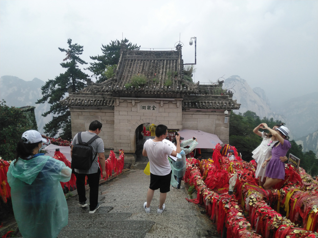 最后过金锁关,苍龙岭向北峰出发,北峰海拔1614米,为华山主峰之一,因位置居北得名。北峰四面悬绝,上冠景云,下通地脉,巍然独秀,有若云台,因此又名云台峰。
