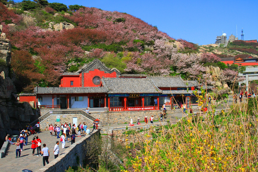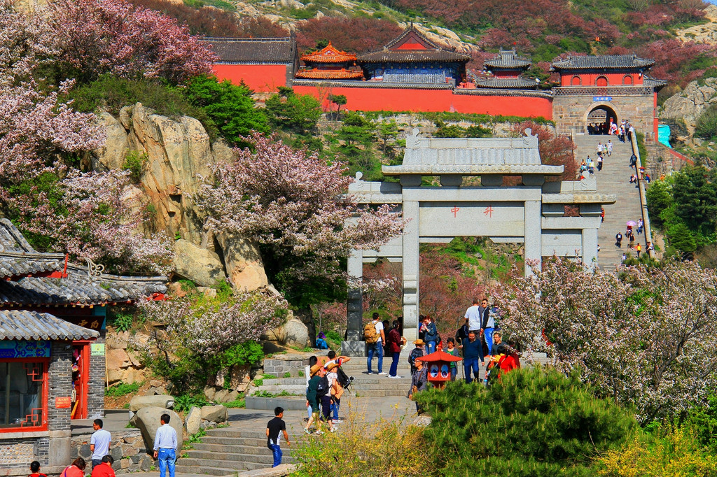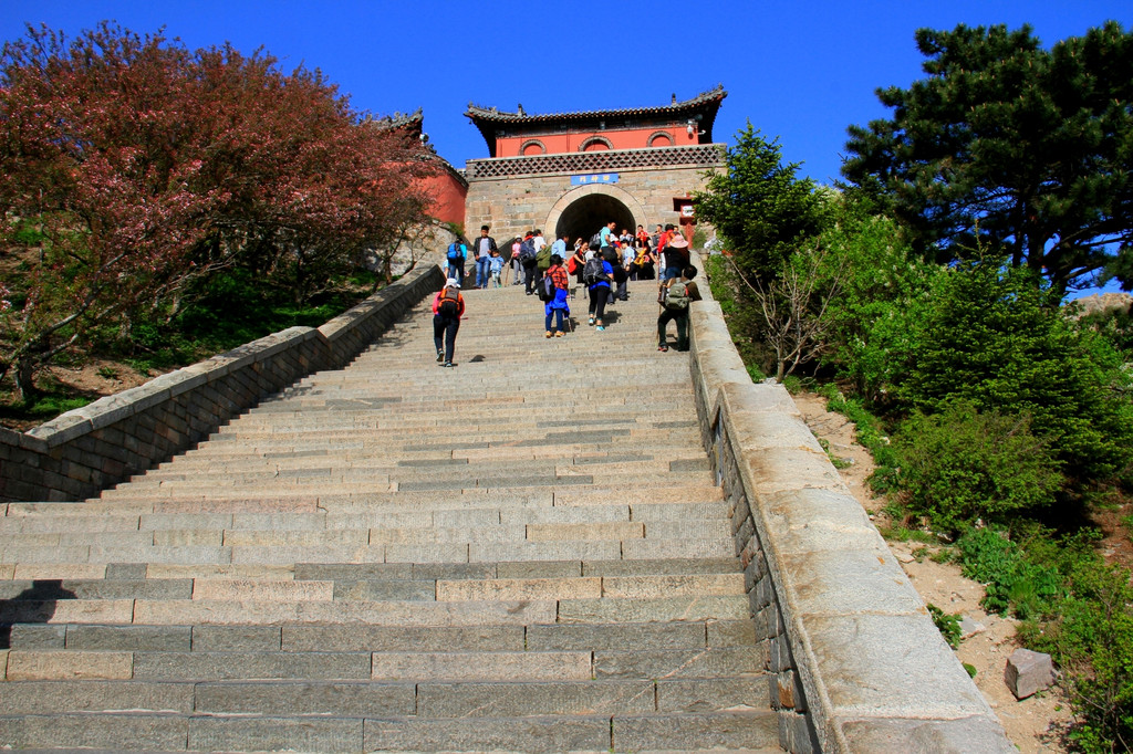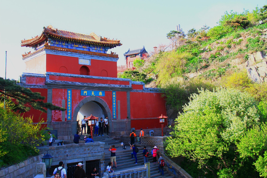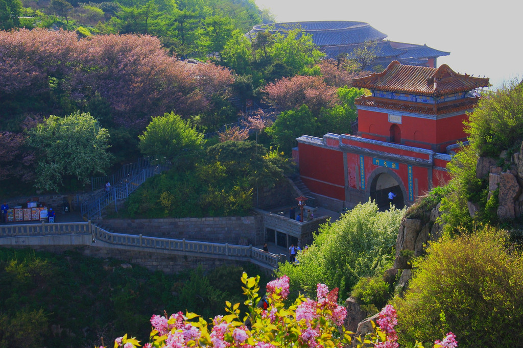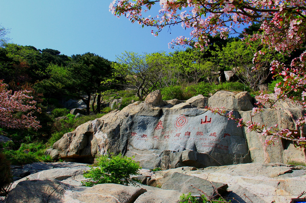 泰山山峰陡峭高耸,自然风光十分壮观。山上还有众多的古迹、石刻、宗教庙宇等人文景观。在这里,春天可以看到山顶上漫山遍野开满了鲜花;夏天山顶翠绿,凉爽宜人;而秋天山间的树叶红黄相间层林尽染;到了冬天则时有雾凇奇观,十分靓丽。
