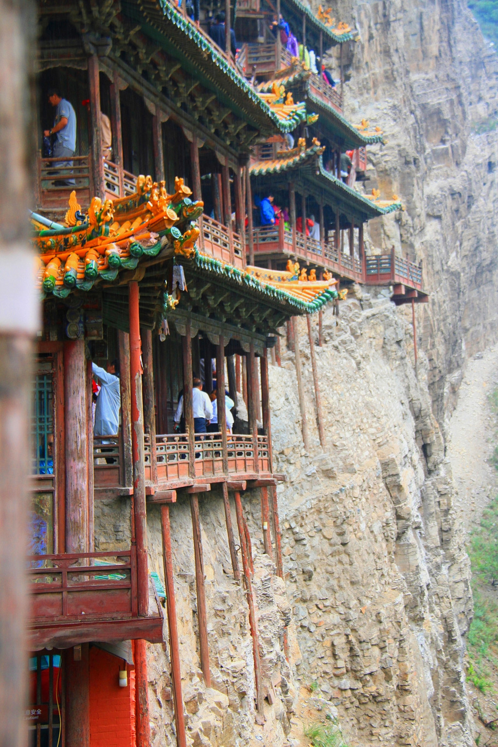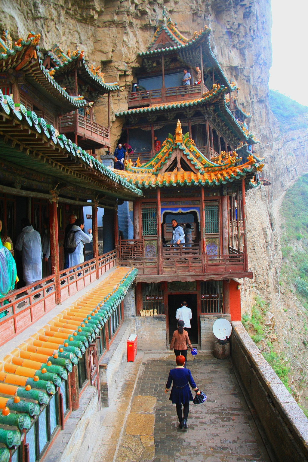 2、悬空寺位于恒山金龙峡翠屏峰的悬崖峭壁间,始建于北魏,距今已有1500多年历史,是国内现存较早、保存较好的高空木构摩崖建筑,是一个很值得一游的地方。