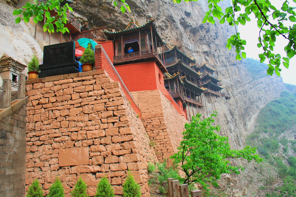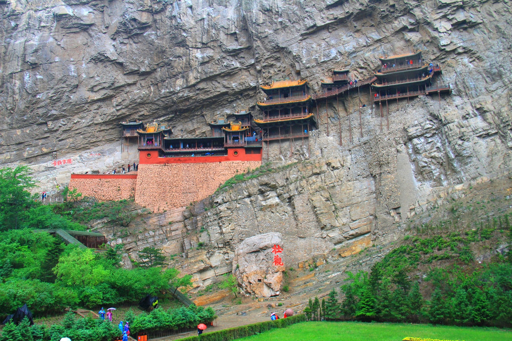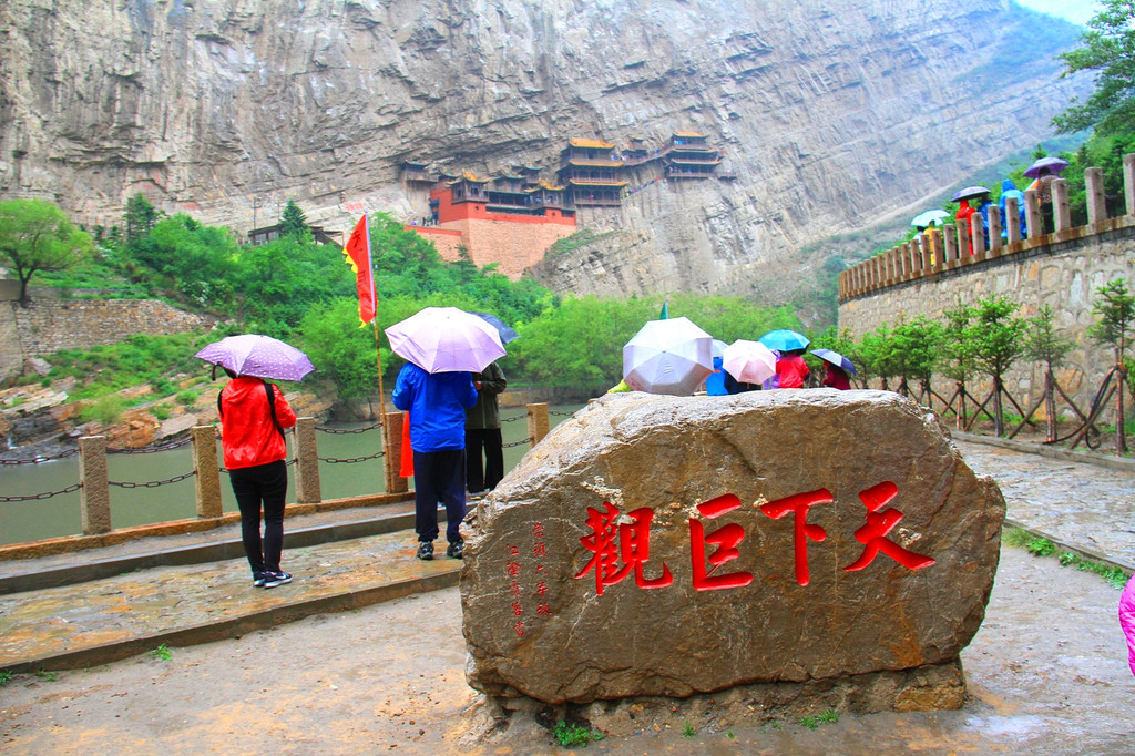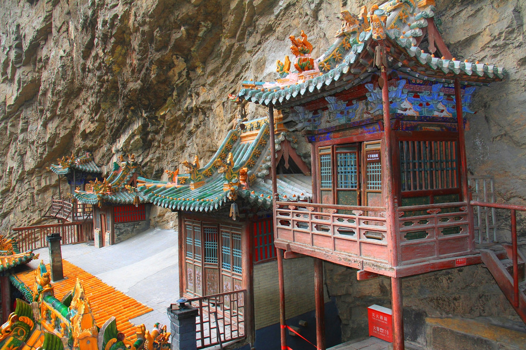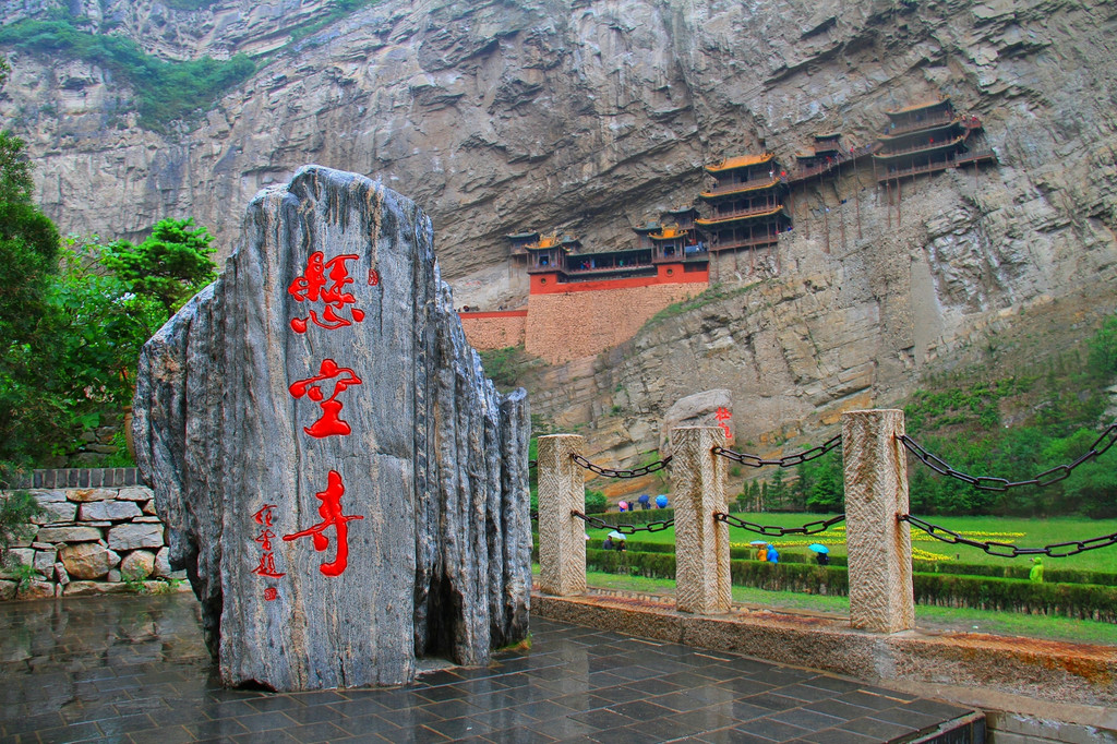 悬空寺,一座千年古寺。来到恒山脚下,远远地就可以看到悬在半山腰的悬空寺,可谓是万丈深渊上的建筑。整个寺院悬在陡峭的崖壁上,利用峭壁的凹凸部分巧妙依势而建,显得格外错落有致,建筑极具特色,素有“悬空寺,半天高,三根马尾空中吊”的俚语,以如临深渊的险峻而著称。是一座佛、道、儒三教合一的独特寺庙,也是全国重点文物保护单位。