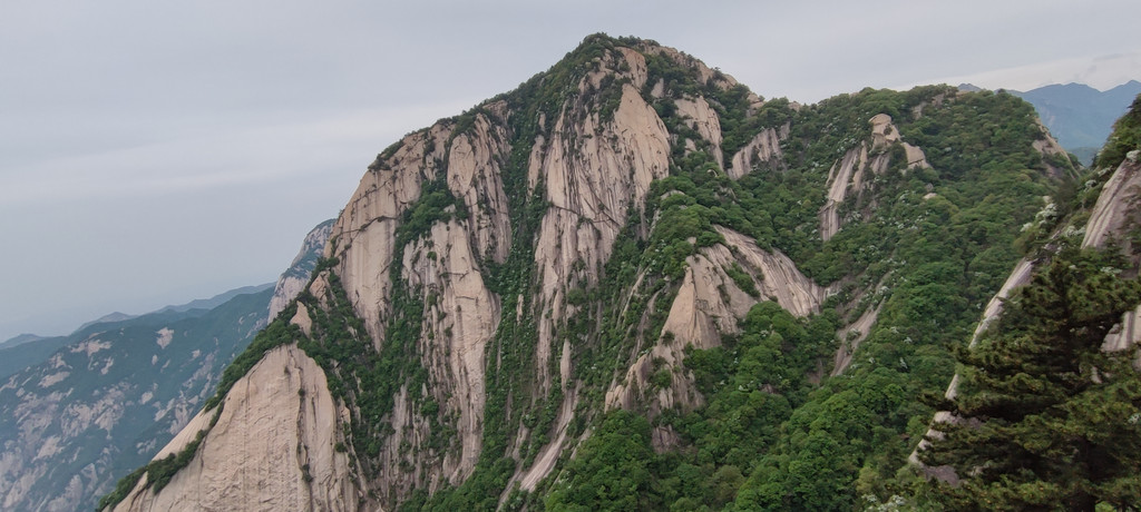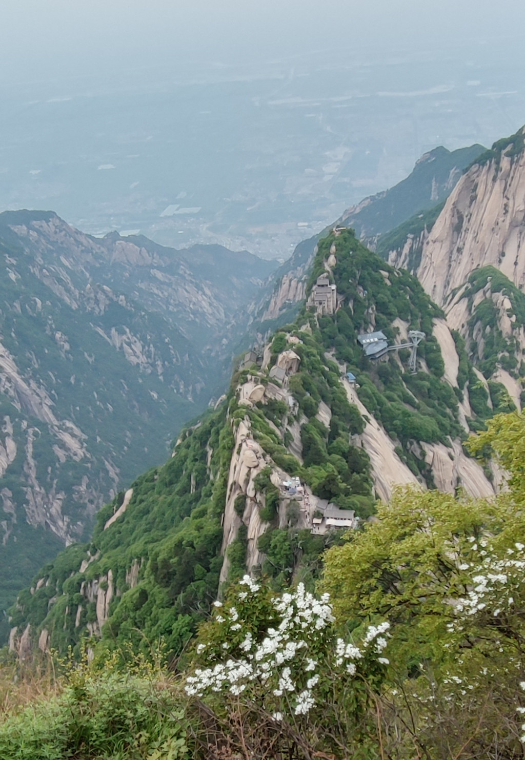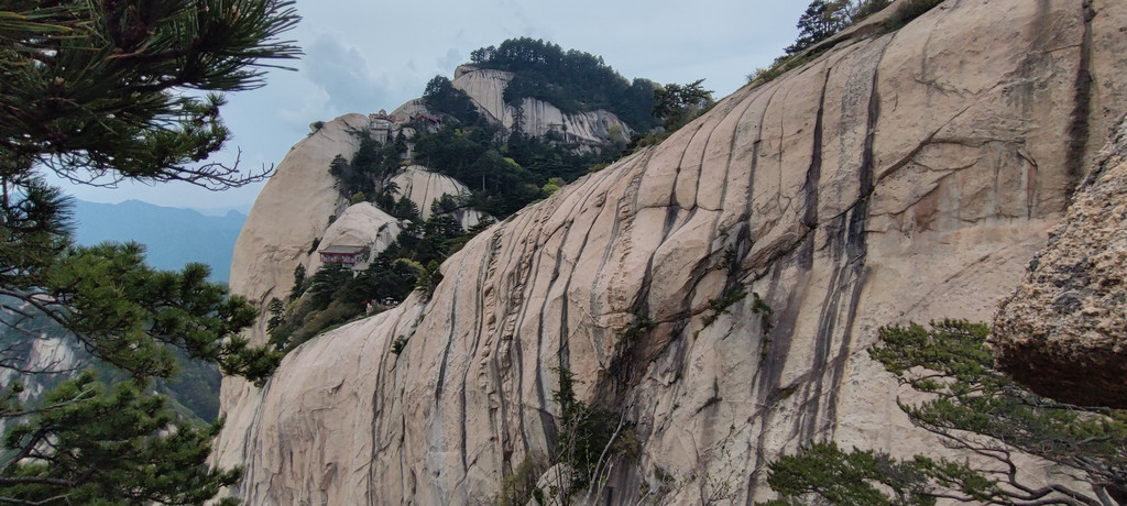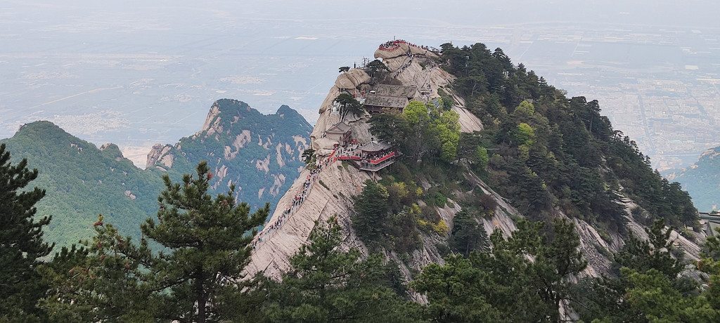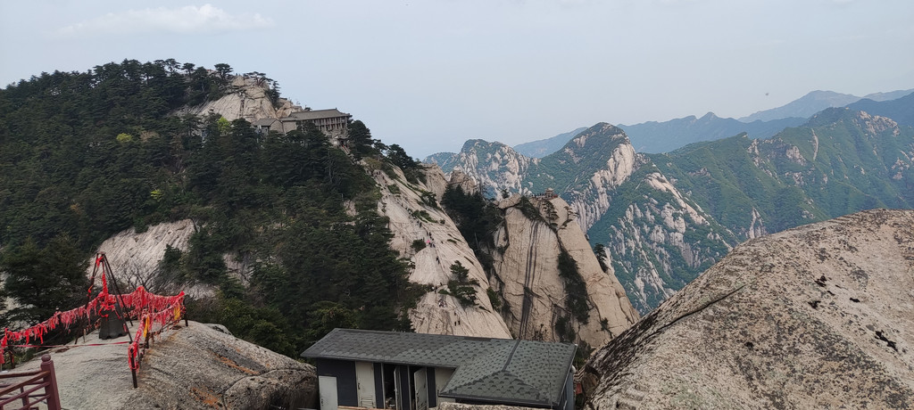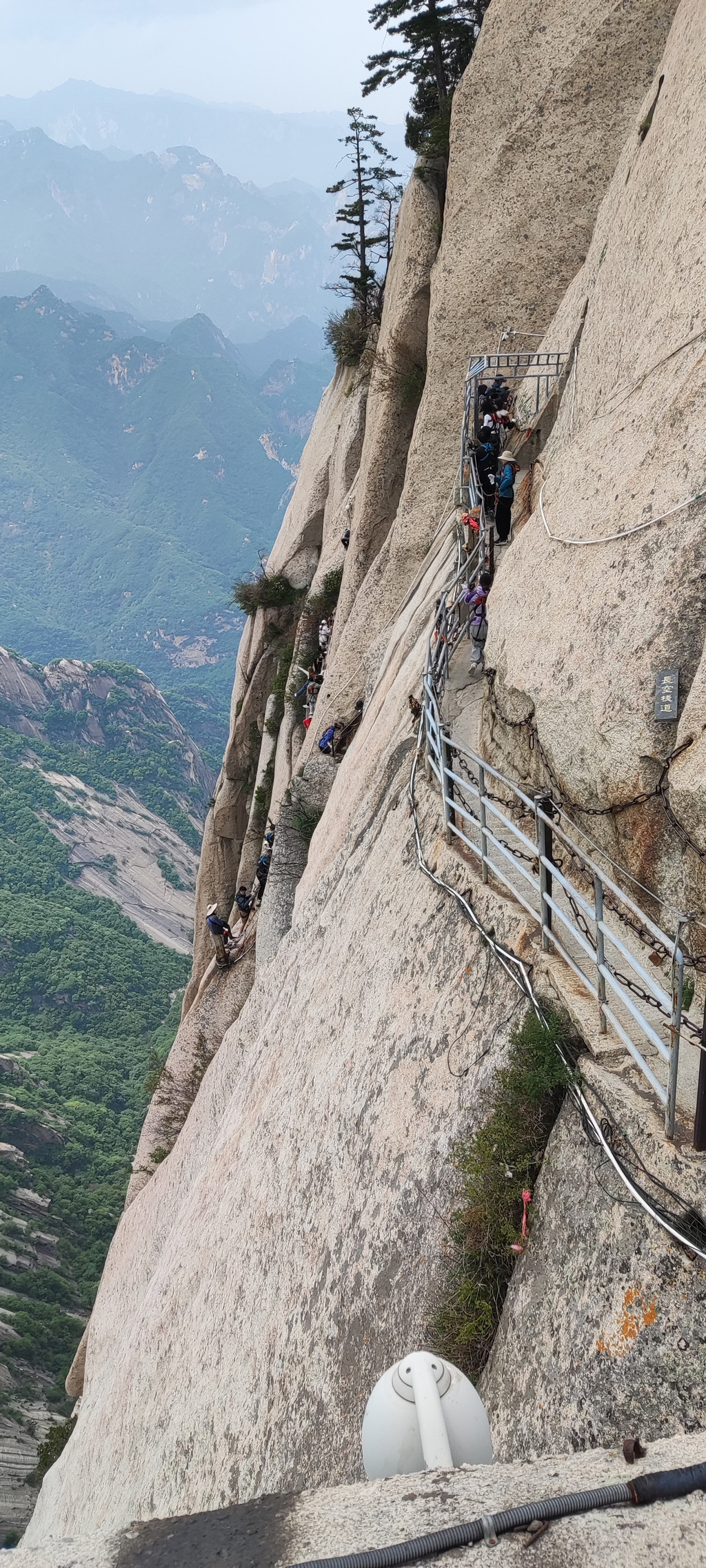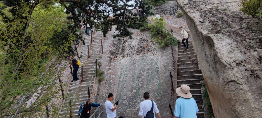 自古华山一条道,苍龙岭,可以看到北峰下山索道了