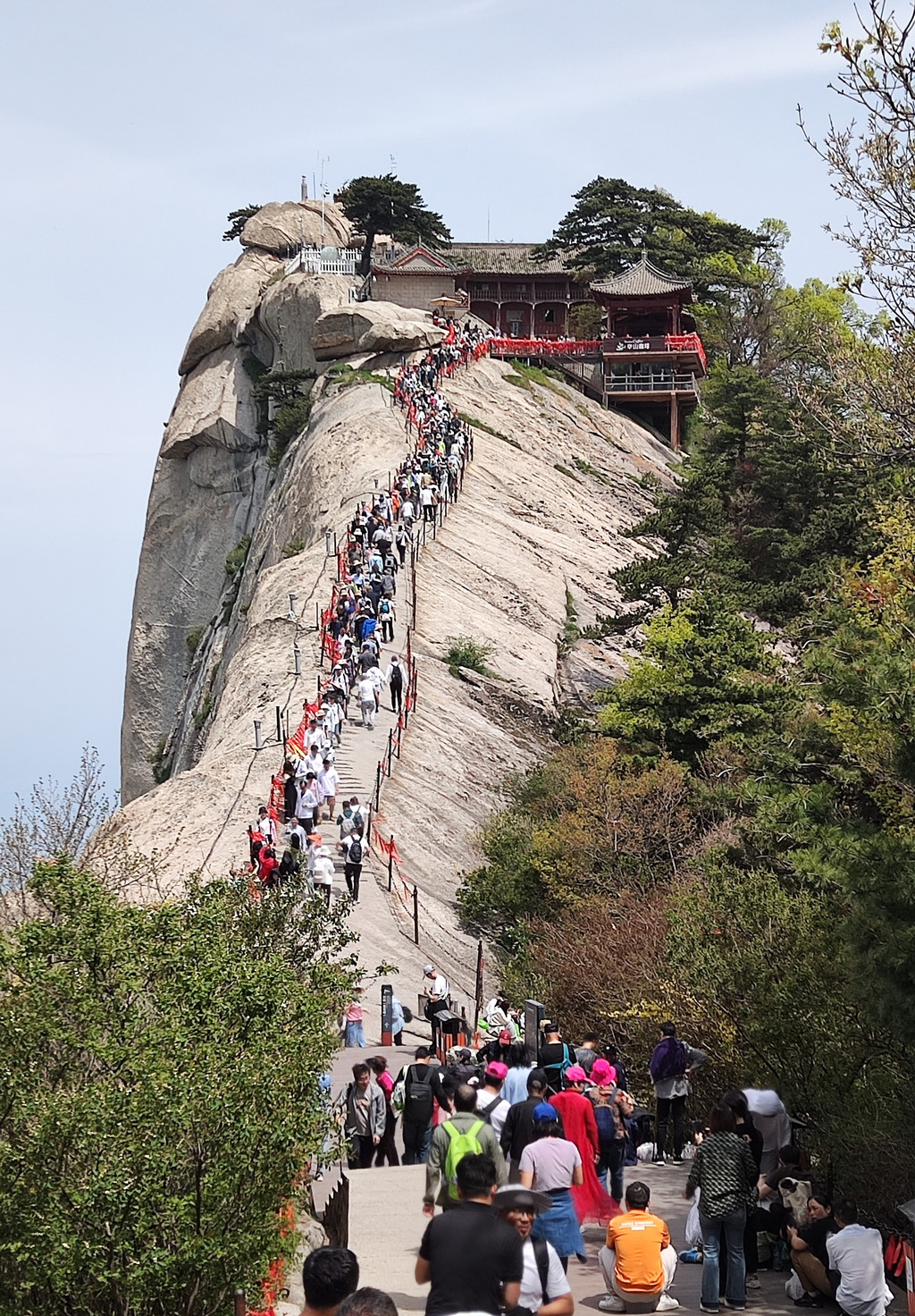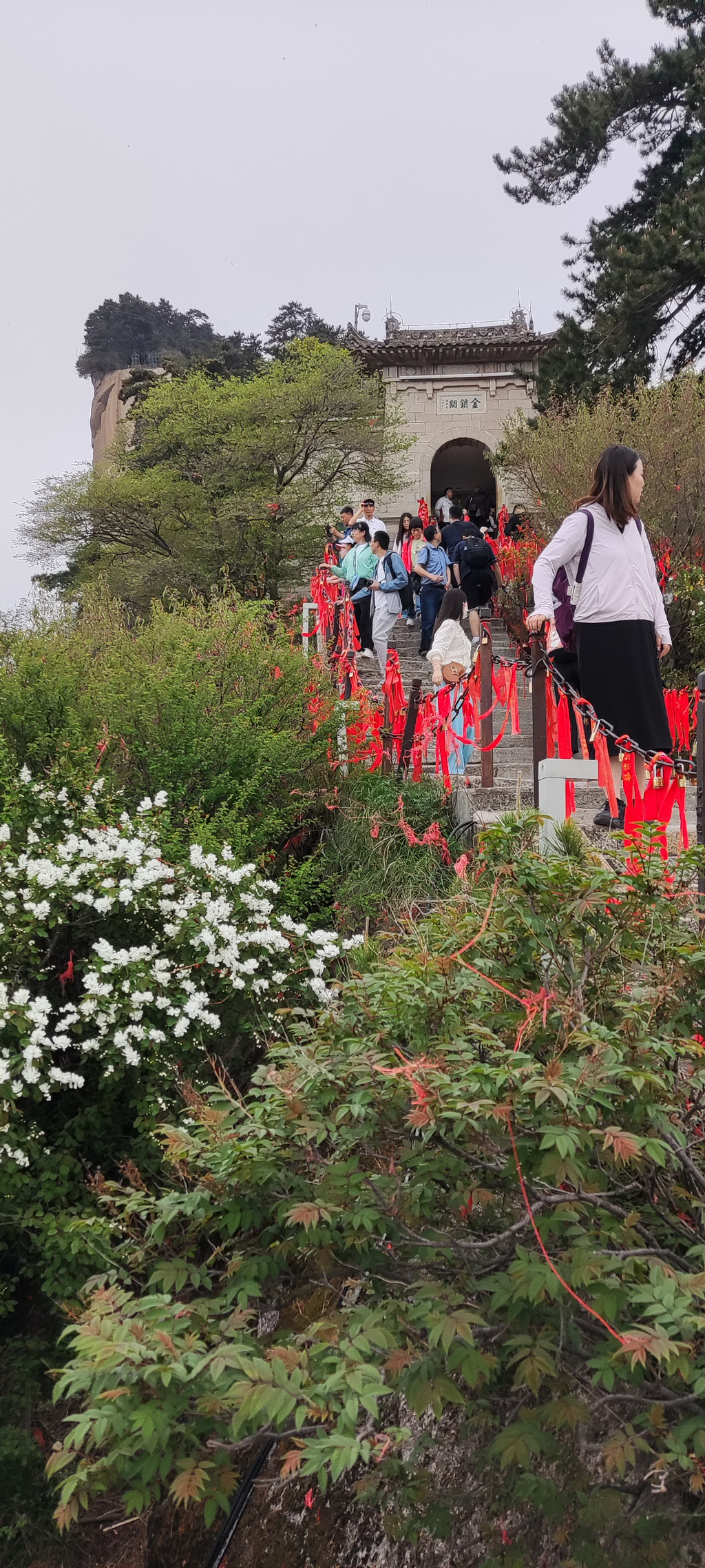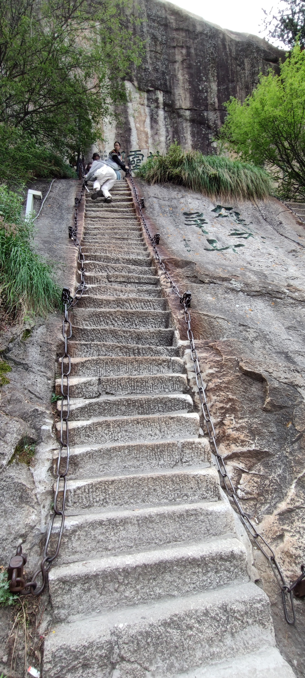 从下往上看,就是上面那一段垂直上下的峭壁惊险。可能比不了长空栈道的距离,所以人少。