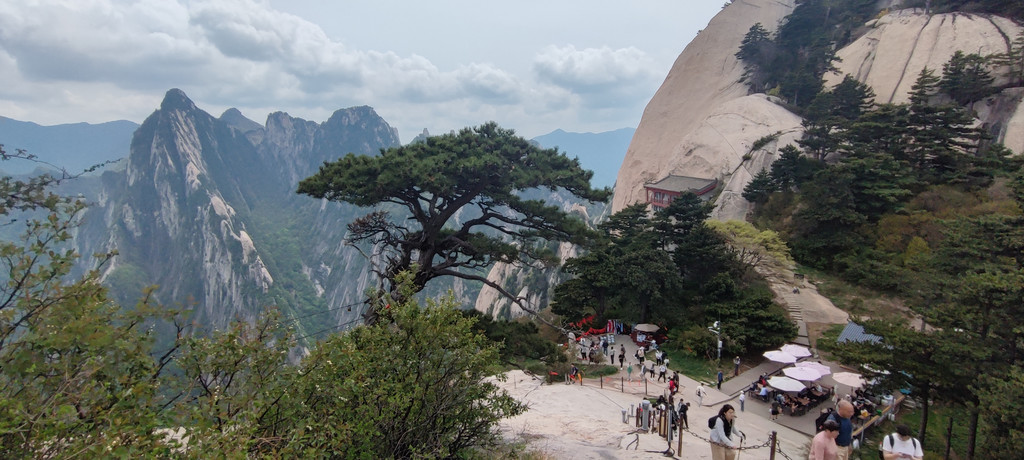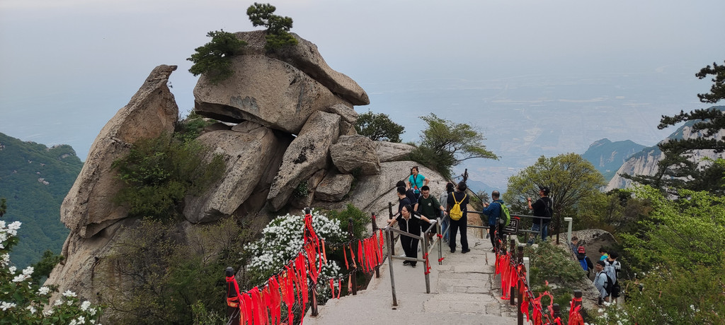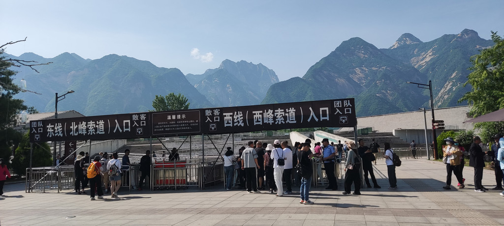 索道下来是西峰,按照西南中东北的顺序慢慢走。上来右转是西峰顶,我稀里糊涂没往右转去西峰顶,而是左转直接往南峰走了。阴差阳错,节省了时间,在鹞子翻身处可以安心排队了。