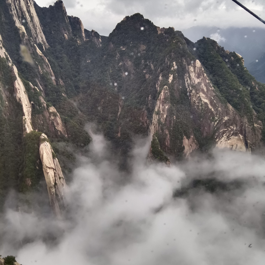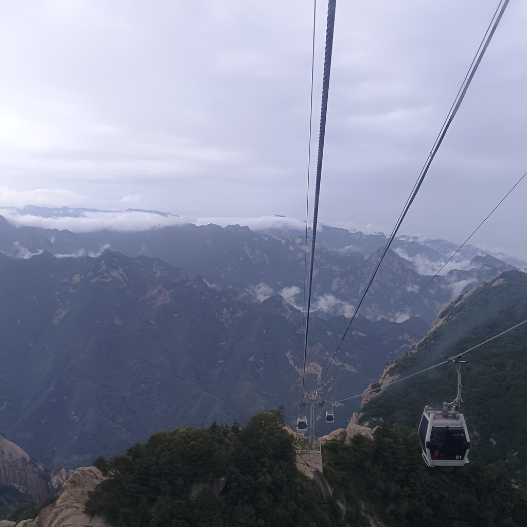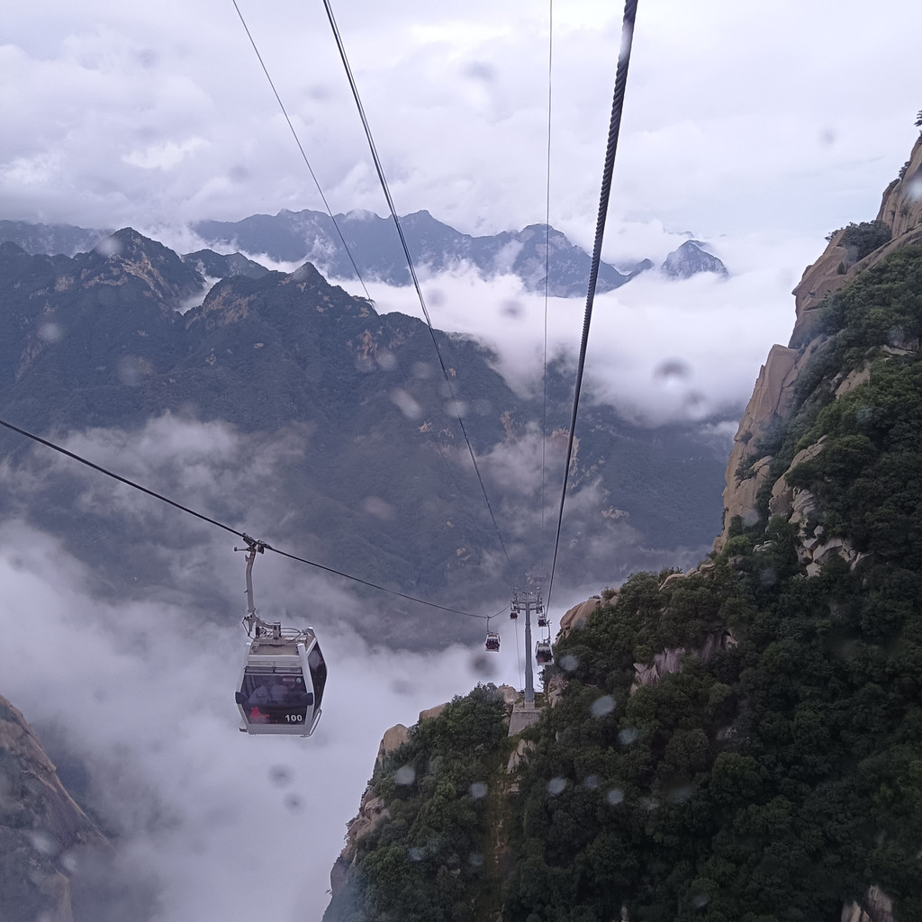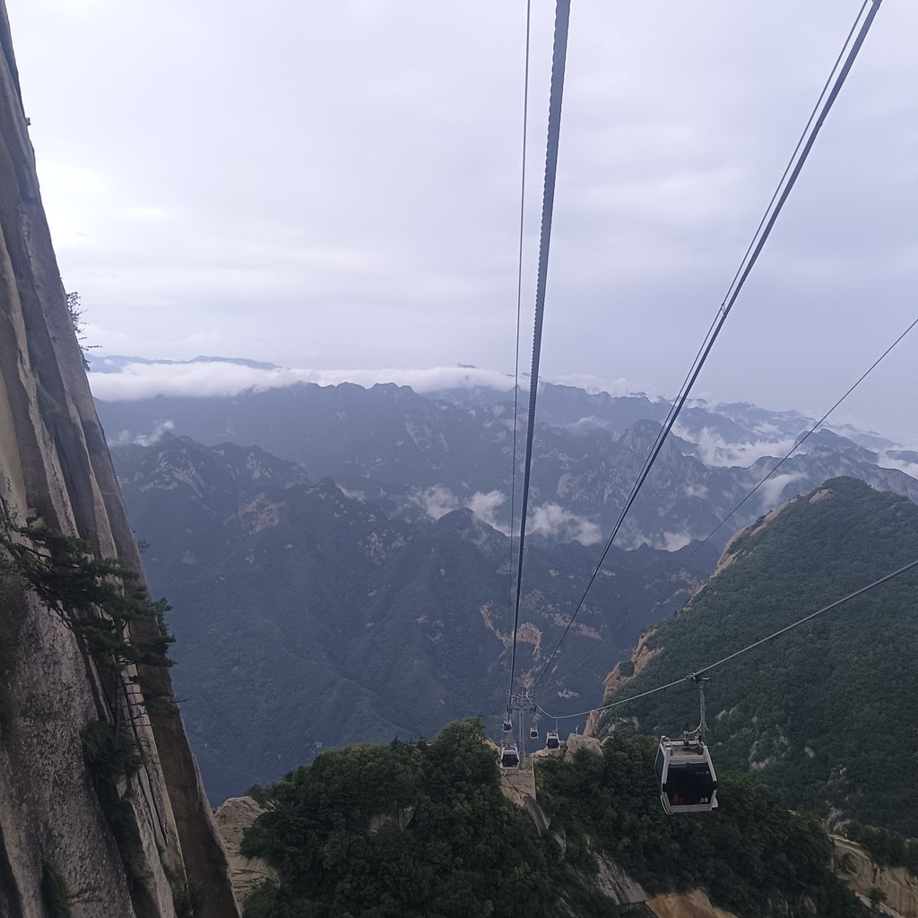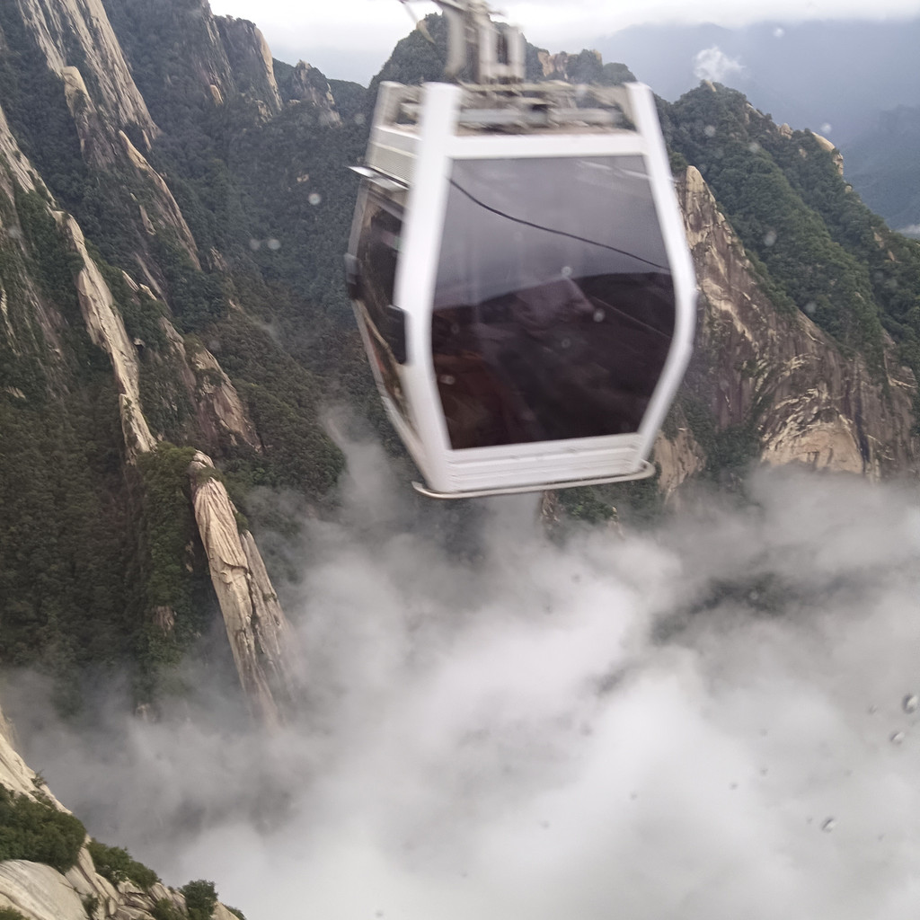 华山在险象环生中展现了惊艳的美。坐在索道车中,看身边的景象,如临仙境,仿佛置身天宫,置身云天中。