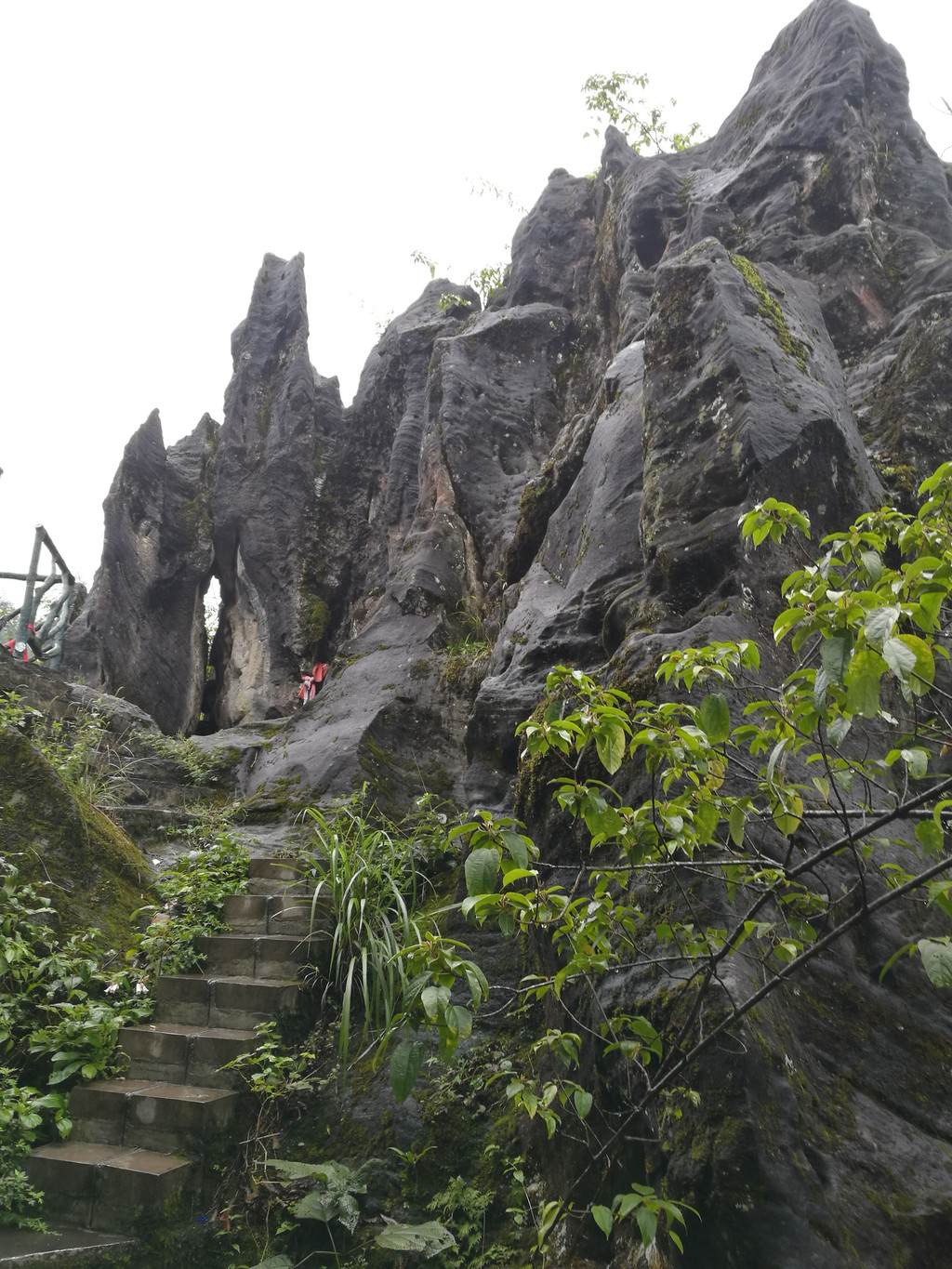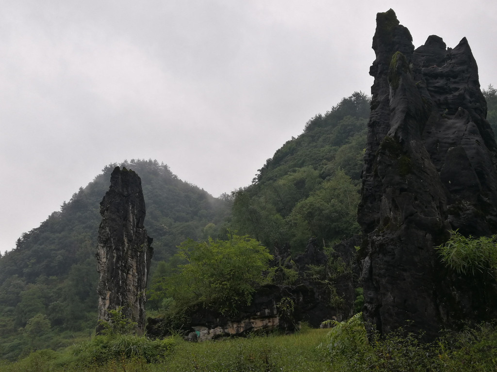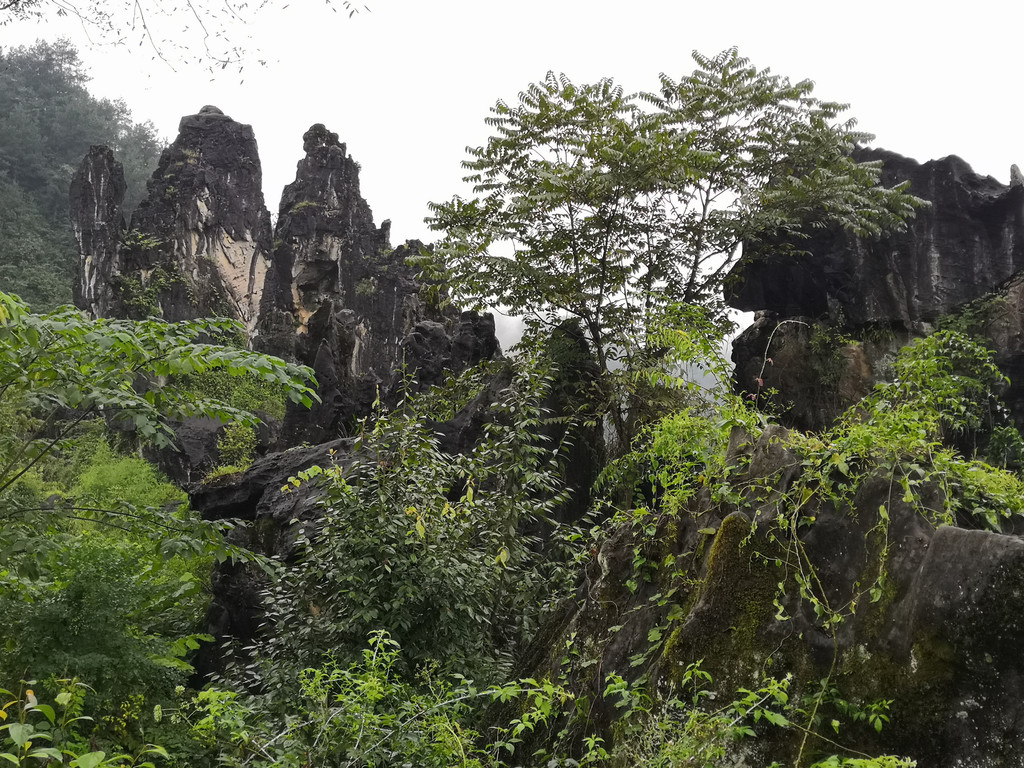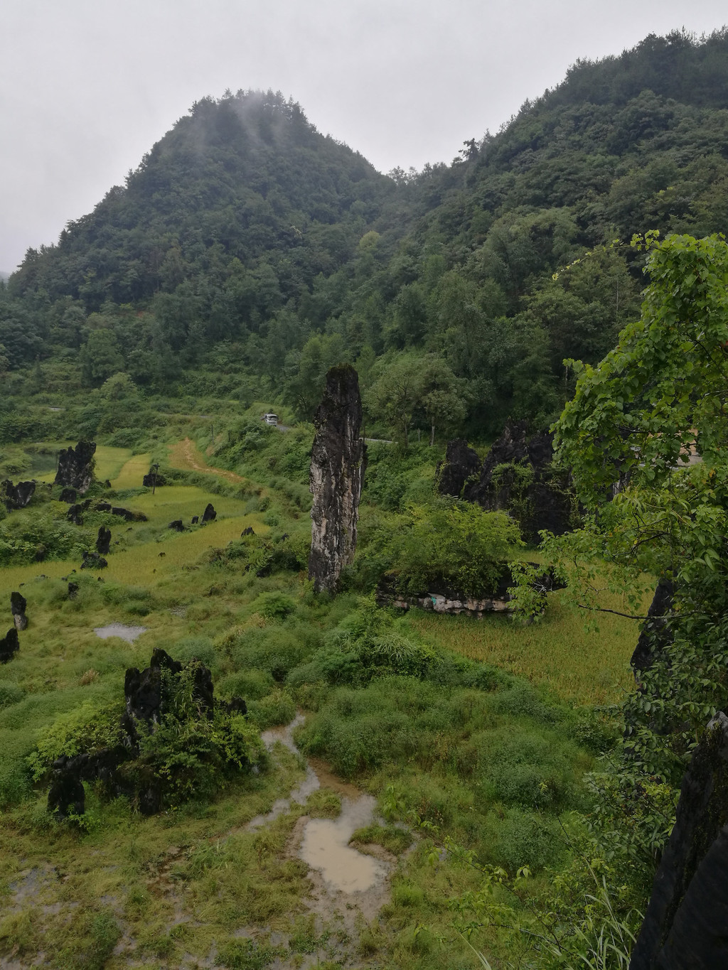 在花垣县排吾乡政府的所在地有一片100多亩的石林,石林内一尊尊巨石拔地而起,有的高40至50米,恰似巨笋,犹如栏杆,所以当地人称之为雷门石林——“石栏杆”。这个景点就在公路边上,没有围墙、没有大门,更没人售票,是个没有开发的“野景”。真因为如此,才特别有味道。