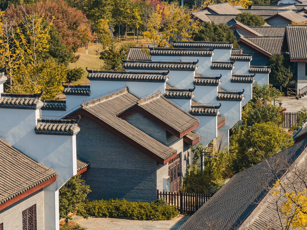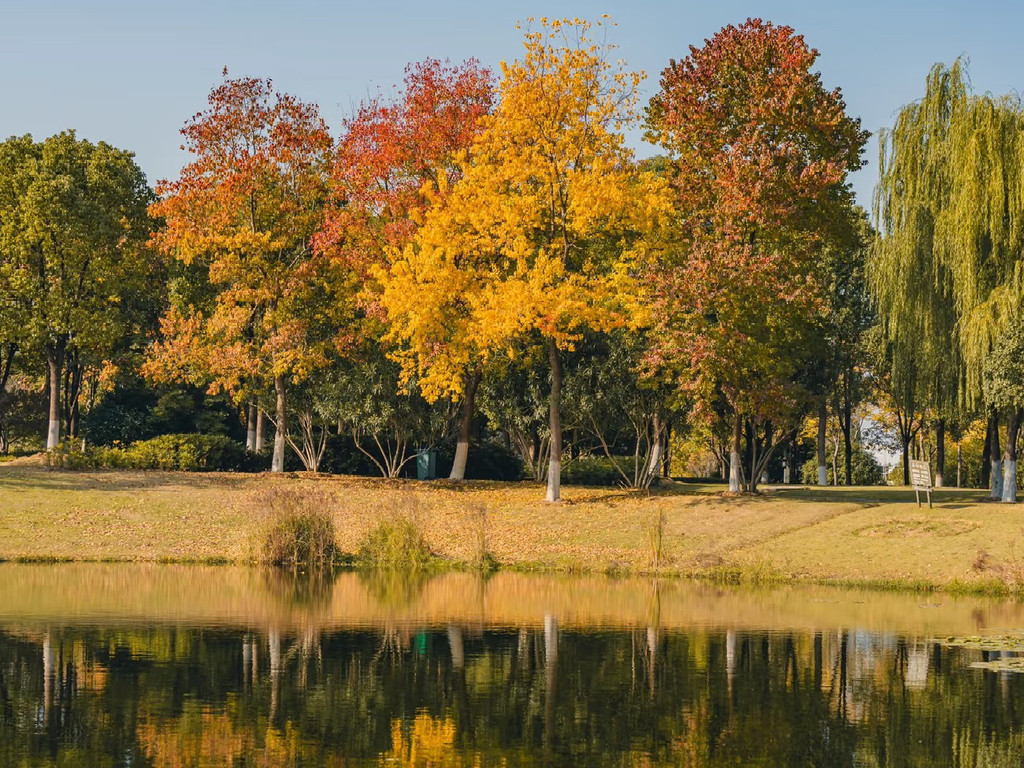 从归元寺乘6号线直达码头潭公园,这里是秋日小众赏景地。白墙黛瓦的徽派建筑环抱着碧绿的潭水,秋色将周围的树林染得红黄相间,倒影成画。人少清静,非常适合拍照和漫步。