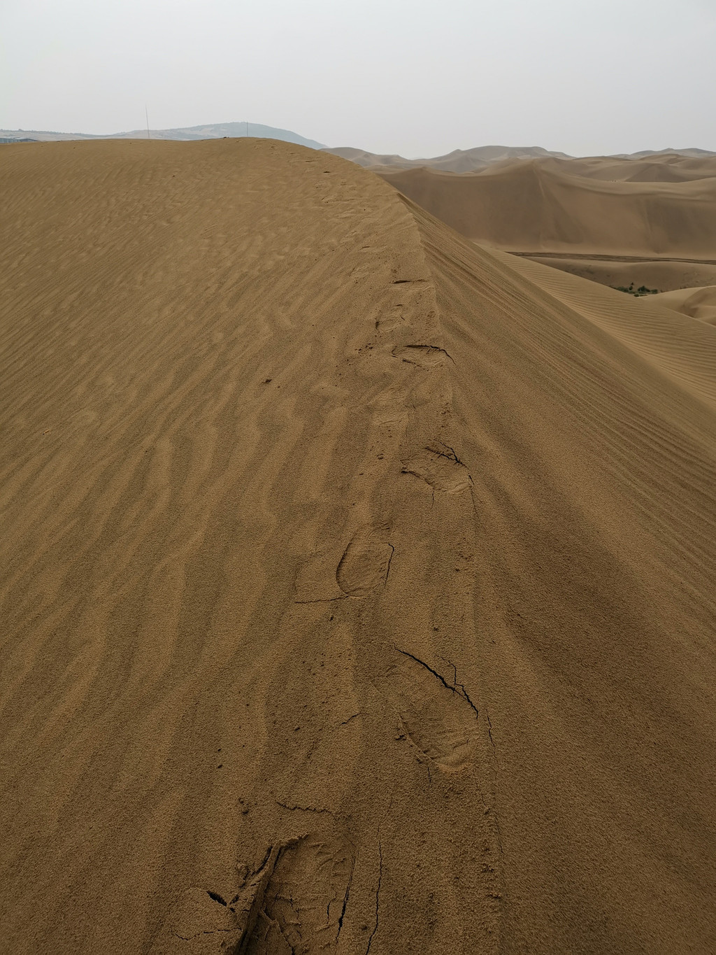今天小雨,没有了沙漠的燥热,却是另一番沙漠景象。沿着沙脊步行,寻找不一样的体验。