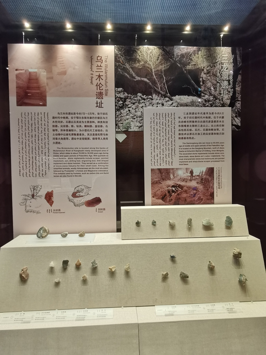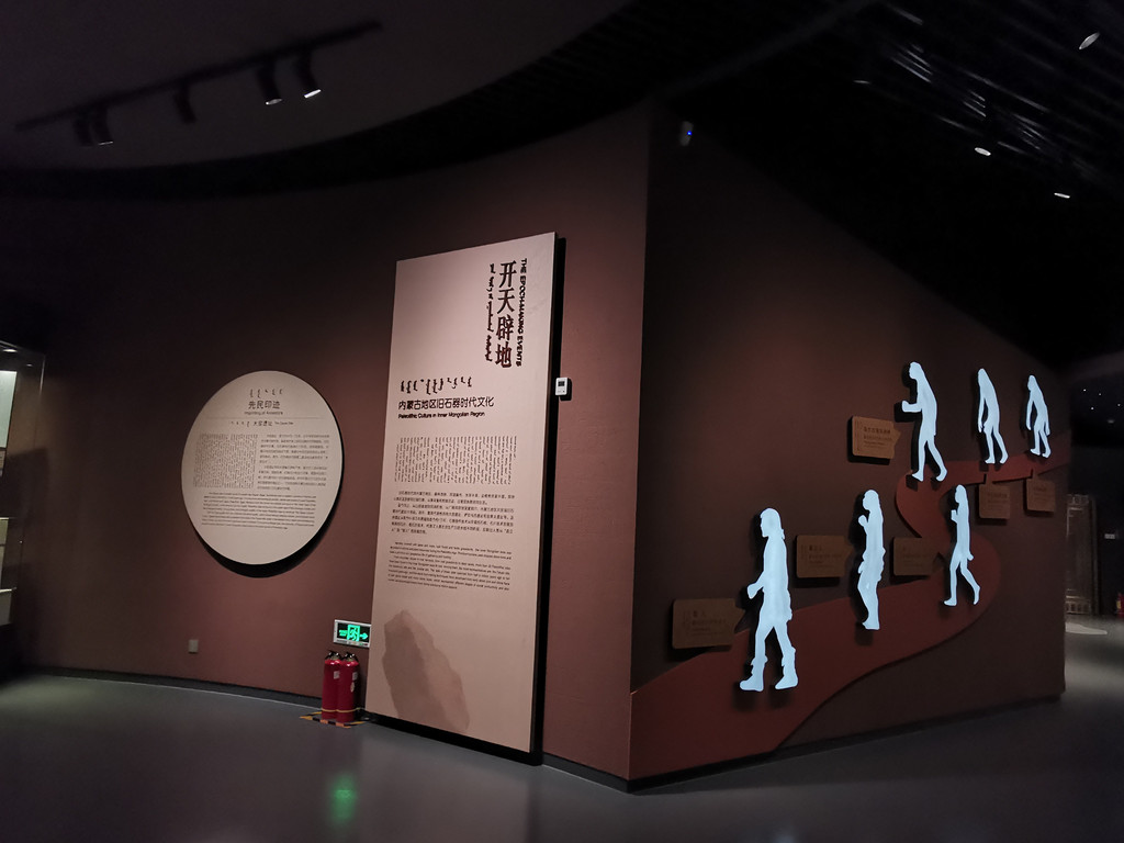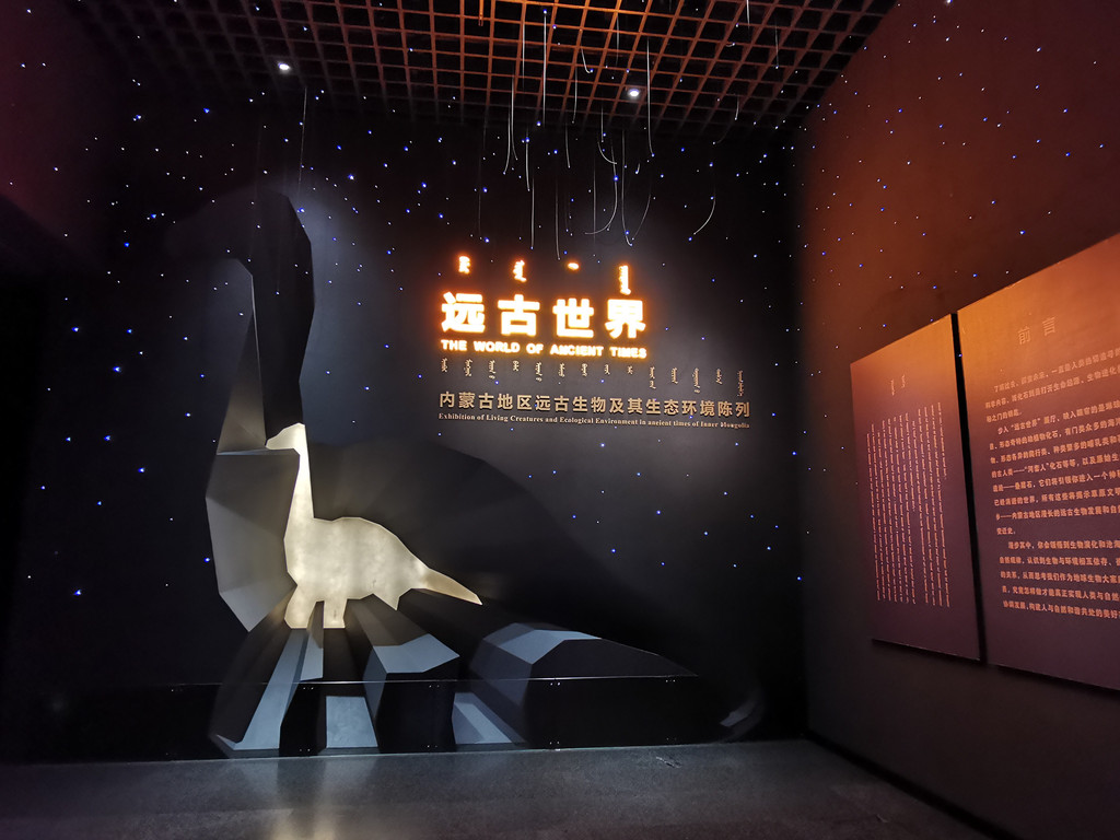 远古世界:内蒙古自然古生物化石陈列,展示自三十亿年前到一万年前起落恢宏的内蒙古远古生态环境巨大变迁,尤其突出中生代恐龙和第三纪、第四纪哺乳动物化石标本。