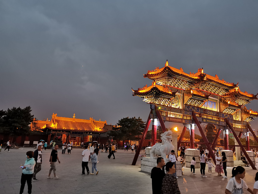 夜幕下的大召寺及牌坊