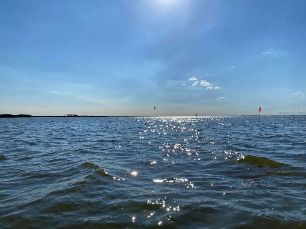 傍晚6点,阳光依然照耀着乌梁素海,湖面上波光粼粼,让人心生向往。