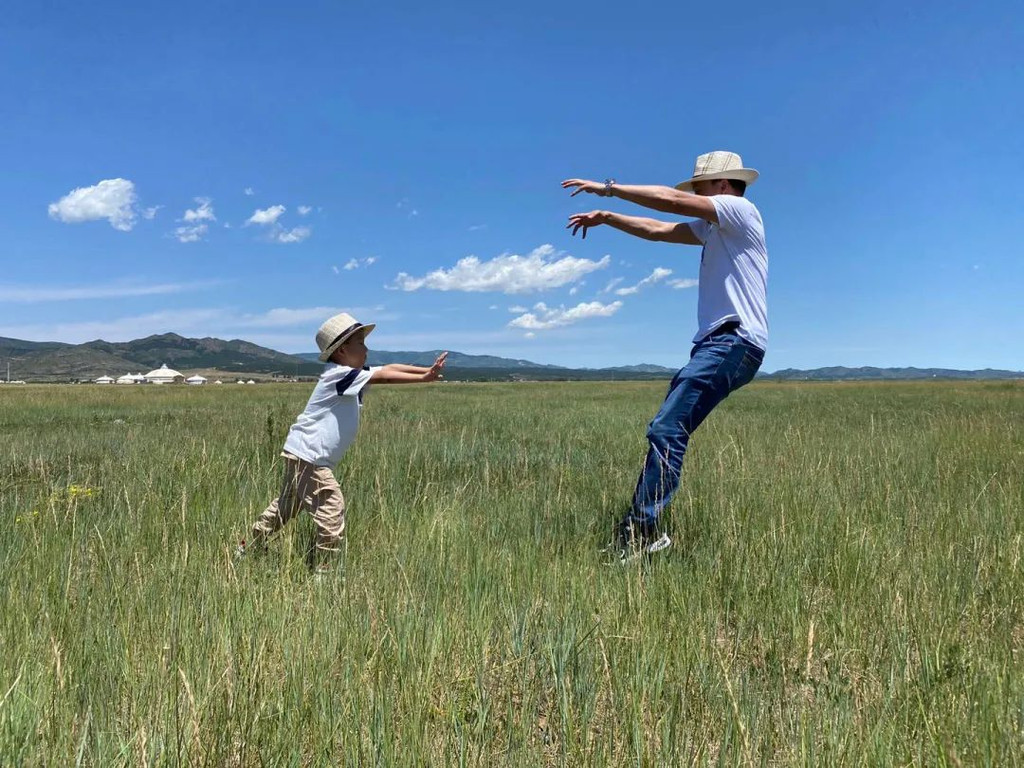 祺爸属牛,所以作为牛仔本牛,也应该来一张符合草原调性的照片。
