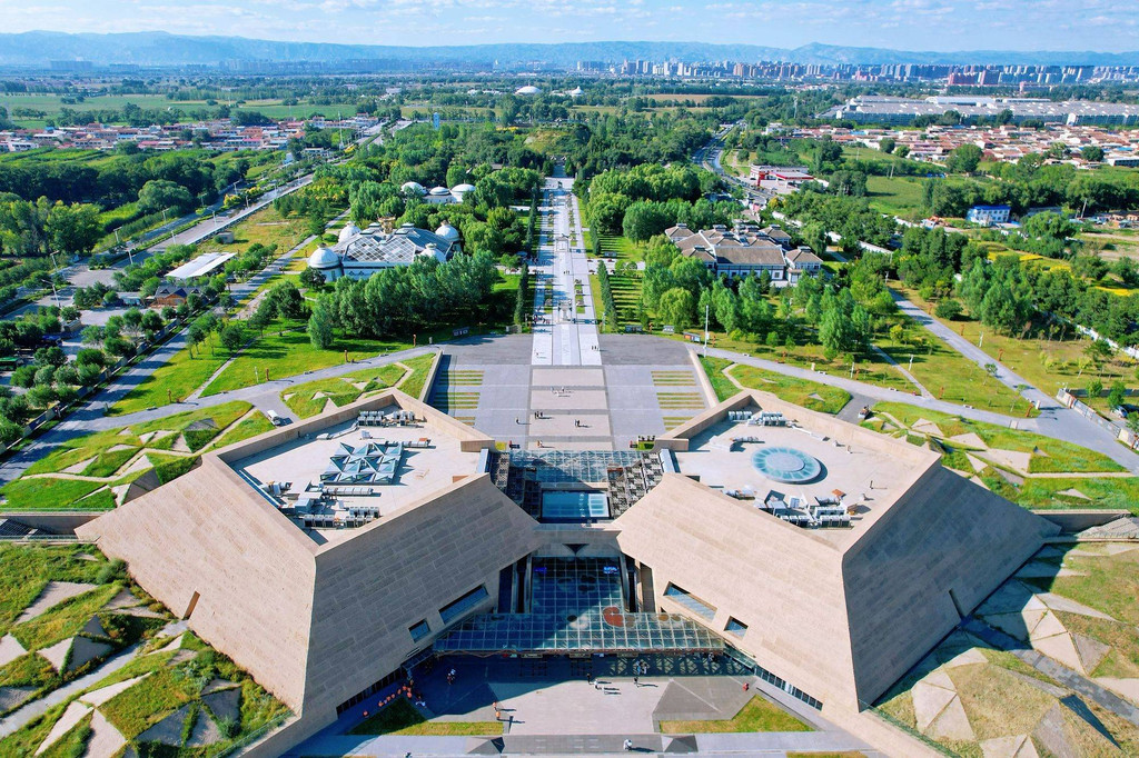 昭君博物院位于呼和浩特市玉泉区,除了青冢墓地外,还包括匈奴历史博物馆、中国古代和亲文化馆,青冢位于中轴线上,两座展馆对称分布,在地势上低于青冢,表现了对昭君的尊重。