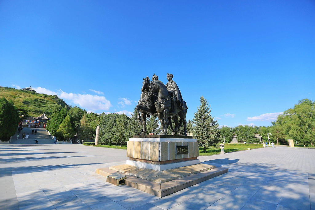 昭君出塞时被封为“宁胡阏氏”,“阏氏”即王后的意思,她在出塞后的一言一行也确实有着王后风范。她传授西汉纺纱织布、种粮种菜等先进技术,参与政事、出谋划策,深得当地人爱戴。和亲铜像是昭君墓的标志性建筑,将其传奇形象定格在一个特别的瞬间,这位勇敢的女子过汉水、入长安,不愿在皇宫虚度年华,又越秦道,赴大漠,成为后人永远的怀念。