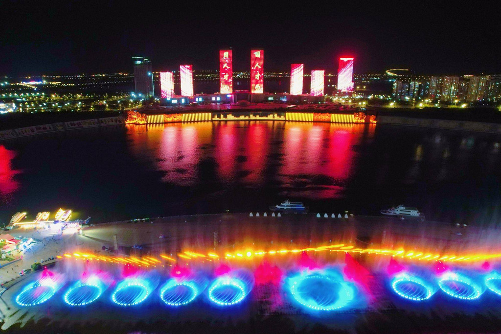康巴什音乐喷泉被誉为“世界第一大音乐喷泉”,水柱最高可达230米,相当于115层楼高,单是高度已让人叹为观止。夜晚,喷泉瞬间涌起,随着悠扬动听的音乐变换姿态,转换色彩。