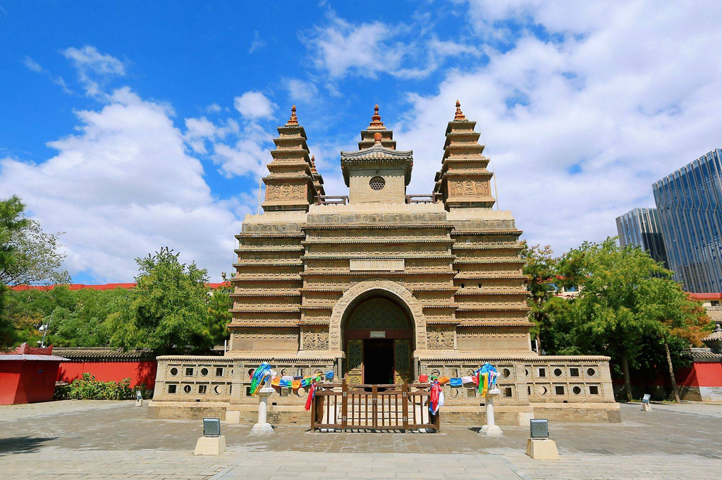 五塔寺原名“慈灯寺”,因为院落最后方的金刚座舍利宝塔太过有特色,太过出名,而喧宾夺主地被人们称为了“五塔寺”。寺庙内的楼阁殿宇外观既有汉族特色又有蒙藏风格,色彩上更显丰富,青色、绿色、朱红、赤红、金色、橙色,和谐搭配在一起,入眼非常漂亮。