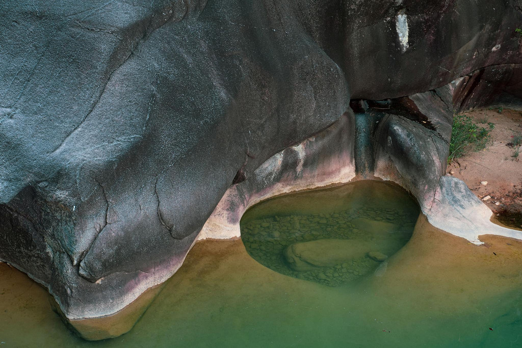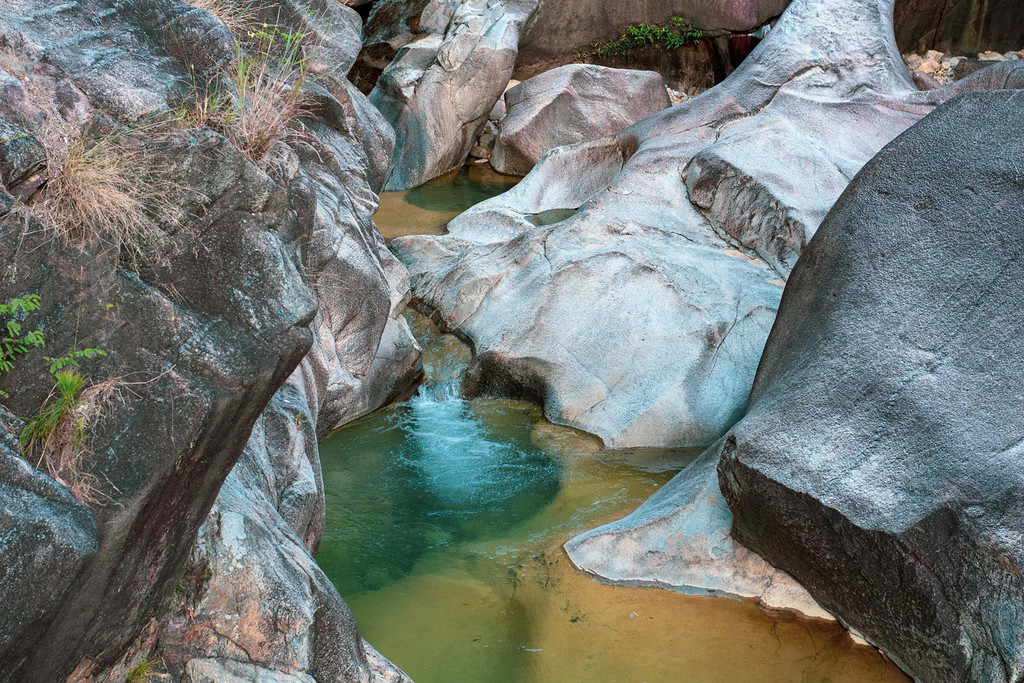 这是一个深藏在白马村白马山里的深潭,全因潭中有个爱心型,所以被徒步经过的驴友发现之后,成为了网红。清晨大山深处的爱心潭,不燥不热,潭边有许多高大的岩石。白马山上清洁的山溪水汇入爱心潭,形成了一个长年不枯竭的深潭。这个爱心潭便是因为石逢中这个爱心型的小池而得名。我们来得比较早,到了下午,好多人会来这里玩跳水、游泳等。顺逸东方白盆湖温泉果蔬种植基地