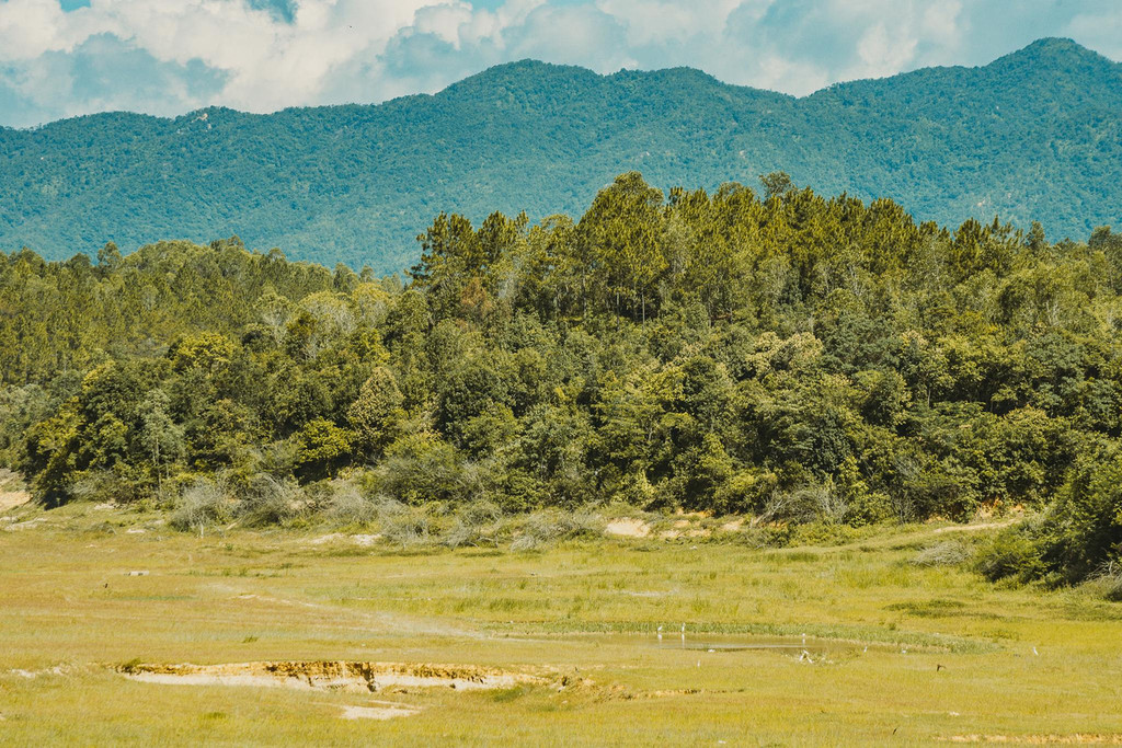 白盆珠是广东的第四大水库,这里风景秀美,湖中各种大大小小的岛屿星罗棋布,湖面非常清澈,湛蓝的湖水和赭红色的湖岸构成了强烈的视觉冲击,远处苍翠的青山隐退在迷蒙之中。镜子般的湖面倒映着头顶的蓝天白云。来到湖边,心情都仿佛飘在天空中的云朵,那么轻盈,那么美丽。湖边有一些废弃了的建筑,看样子是烂尾的别墅,据说每到周末,周边的很多驴友会来这里露营,房子里根本挤不上,帐篷深深要搭满外面的空地,想必场面非常壮观。周边杂草丛生,倒是很适合拍些废墟类的写真。新庵草原